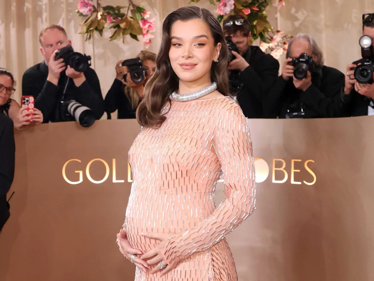 Hailee Steinfeld Debuts Her Baby Bump on the 2026 Golden Globes Red Carpet