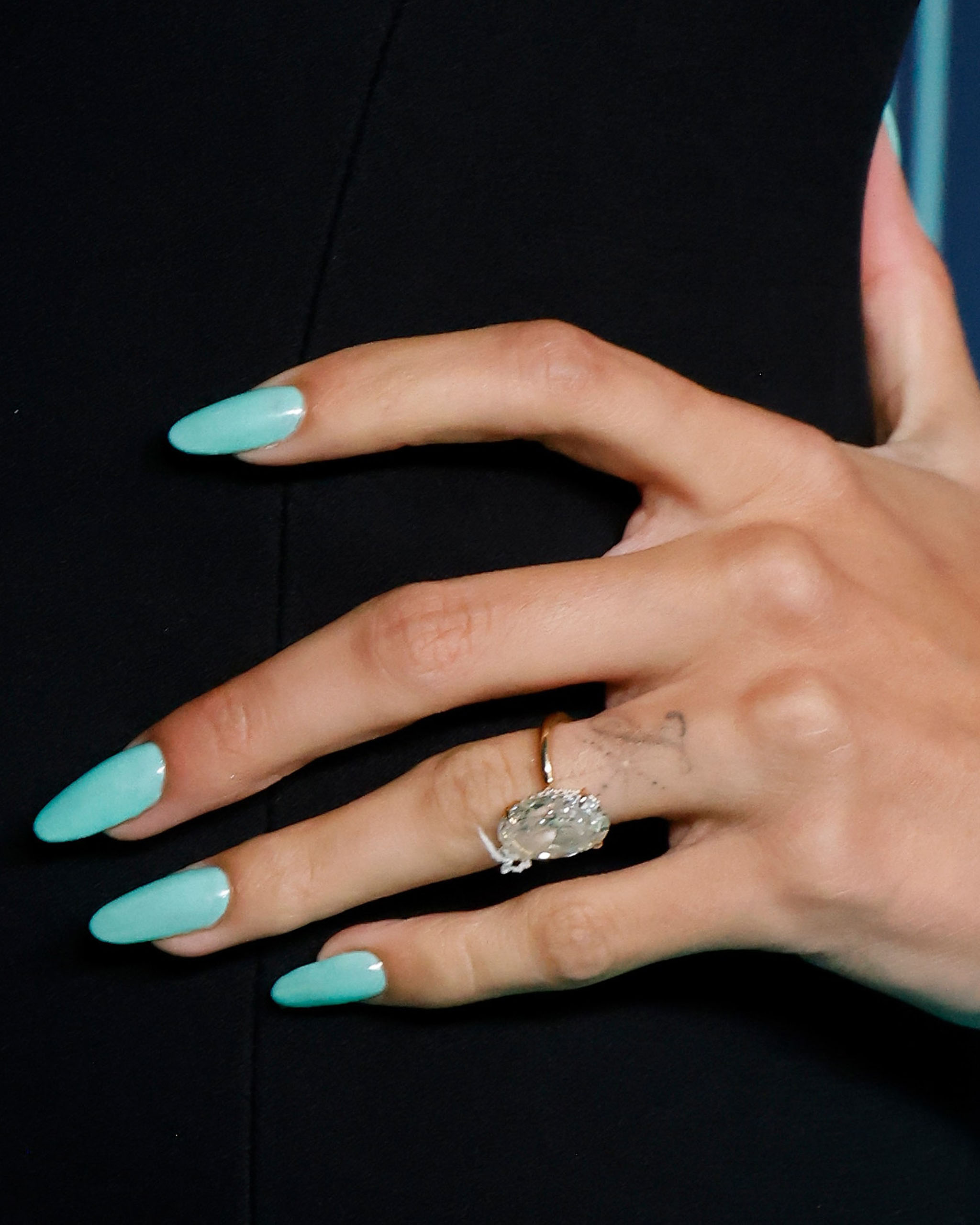 More Jennifer Lopez inspo. This rich chocolate brown with grey undertones not only makes for a great neutral nail, but it also provides the perfect contrast to coloured engagement rings. Her green diamond just pops.