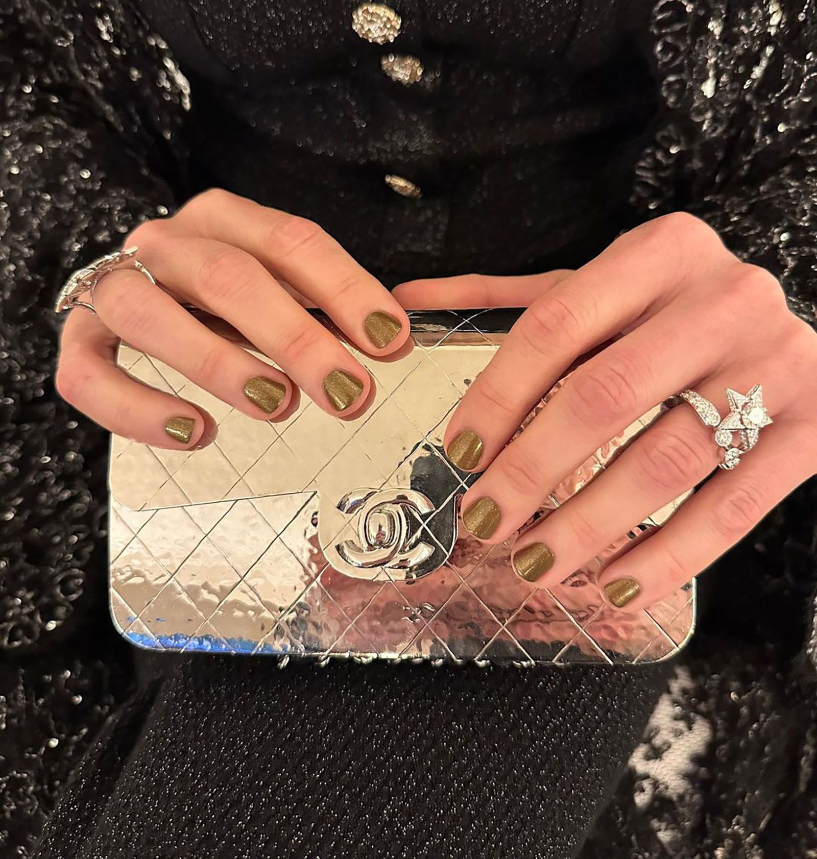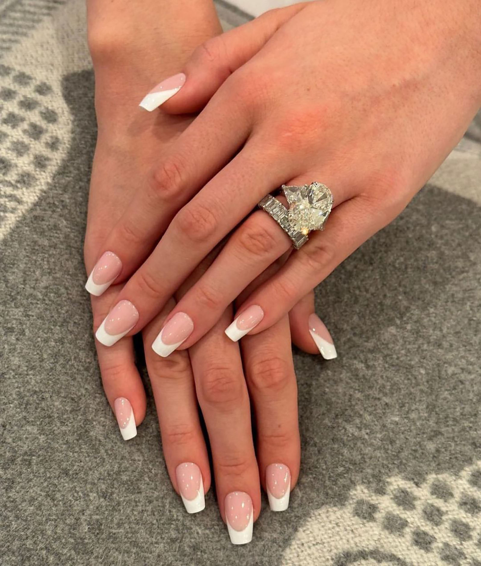 In true “quiet luxury” fashion, Sofia Richie Granger wore her natural short nails with her engagement ring. If you want to keep it bare but still polished, swipe on a clear coat like the OPI Brilliant High-Shine Top Coat, or the Dior Nail Glow Polish that gives you a hint of pink.