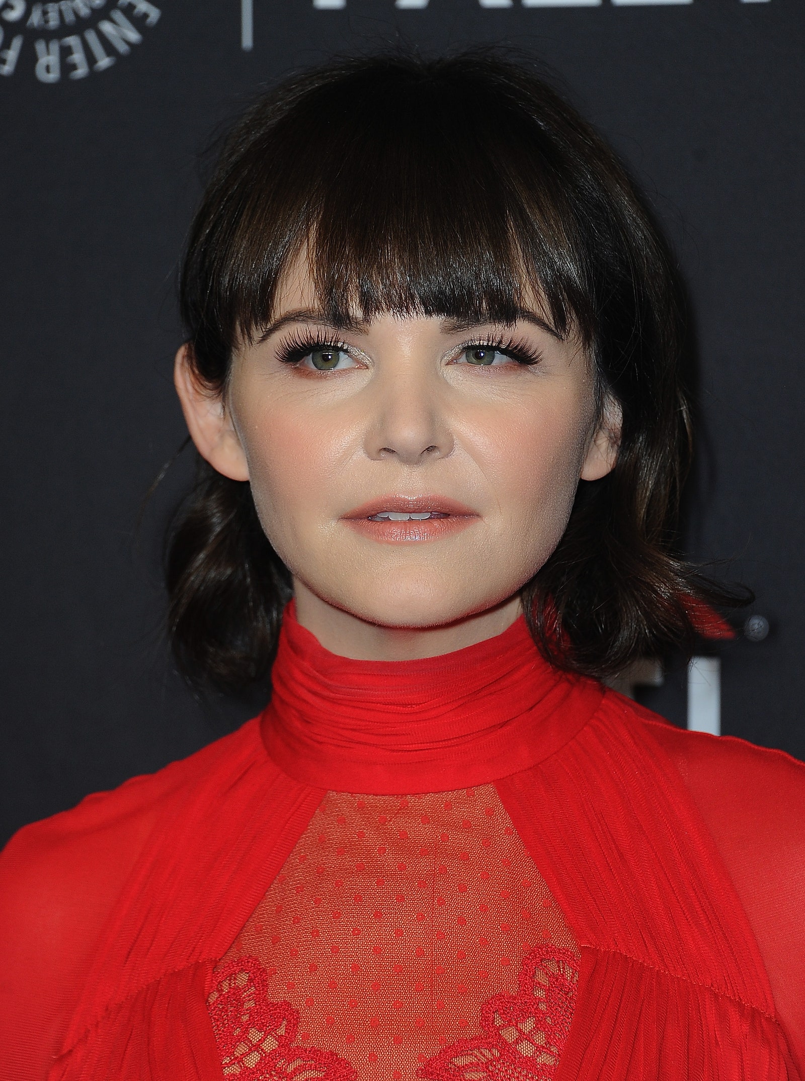 This bob is all down to the bang. Though full, Goodwin’s fringe is cut in a quietly rounded arch and features a bit of romantic wispiness, the soft body of the style highlighting her face shape.