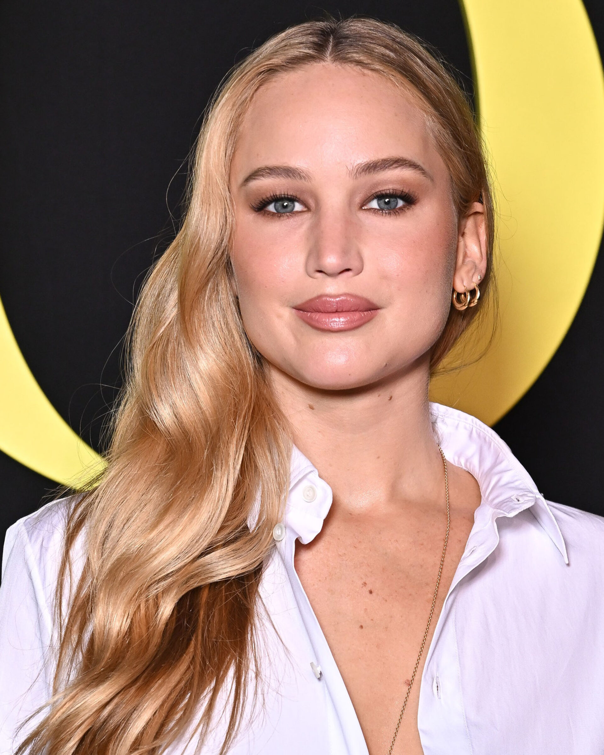 Lawrence’s glossy blonde is one of her most striking assets. Though the actor has favored pixies and chops in years past, her luxurious, single-length, center-separated waves are a study in easy elegance.