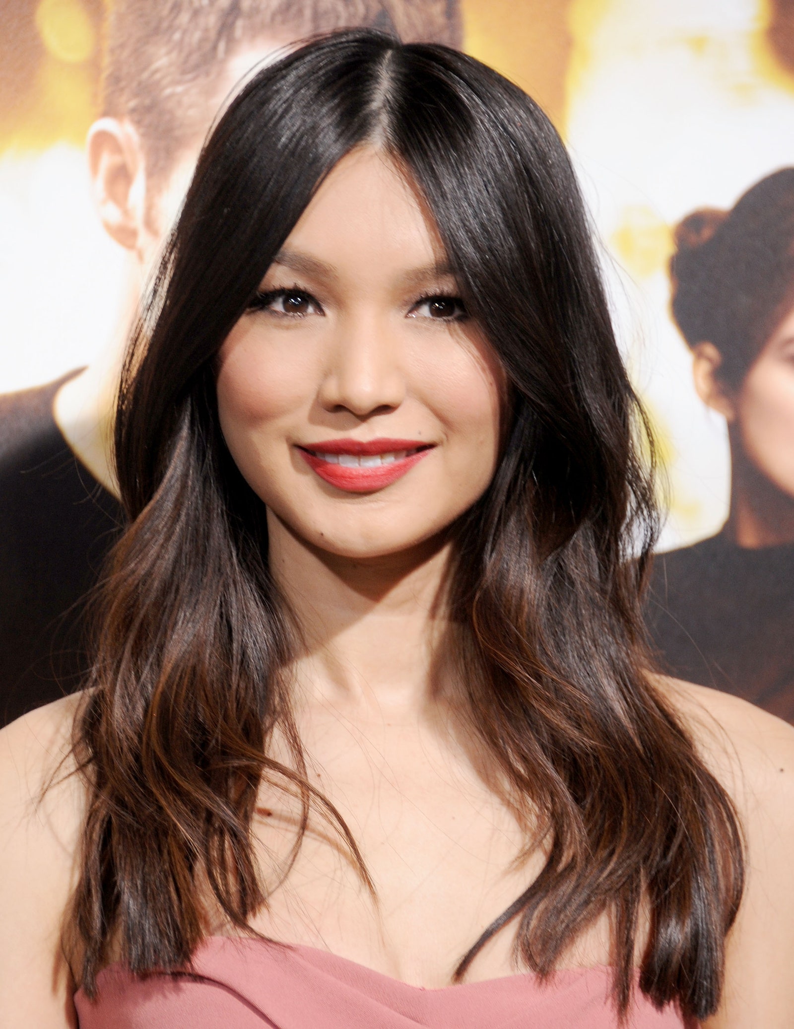 Curtain bangs—or even the illusion of curtain bangs, as with Chan’s long-layered cut—prettily frame round faces. To capitalize on the style, curl front sections away from your face at the cheekbone.