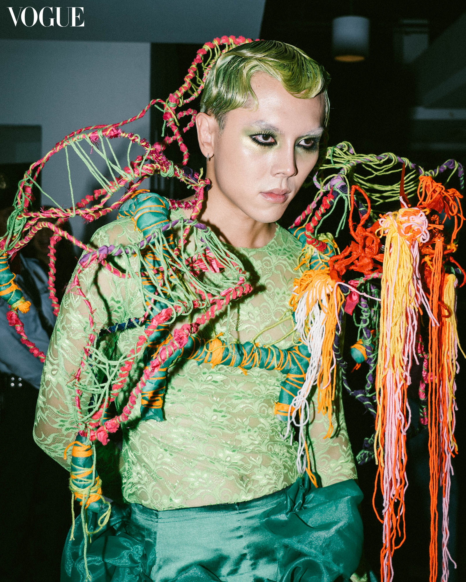 Cheetah Rivera lends us a viable option to ditch the winged flick and instead trade it in for soft, tightlined eyes. Applying a subtle liner to the waterline creates a delicate, smoky definition on the eyes. Pair with a light bronze on the lids for a bolder, sexier look. Tightlined eyes take a more daring role in Rafa Worldwide’s grunge ensembles.