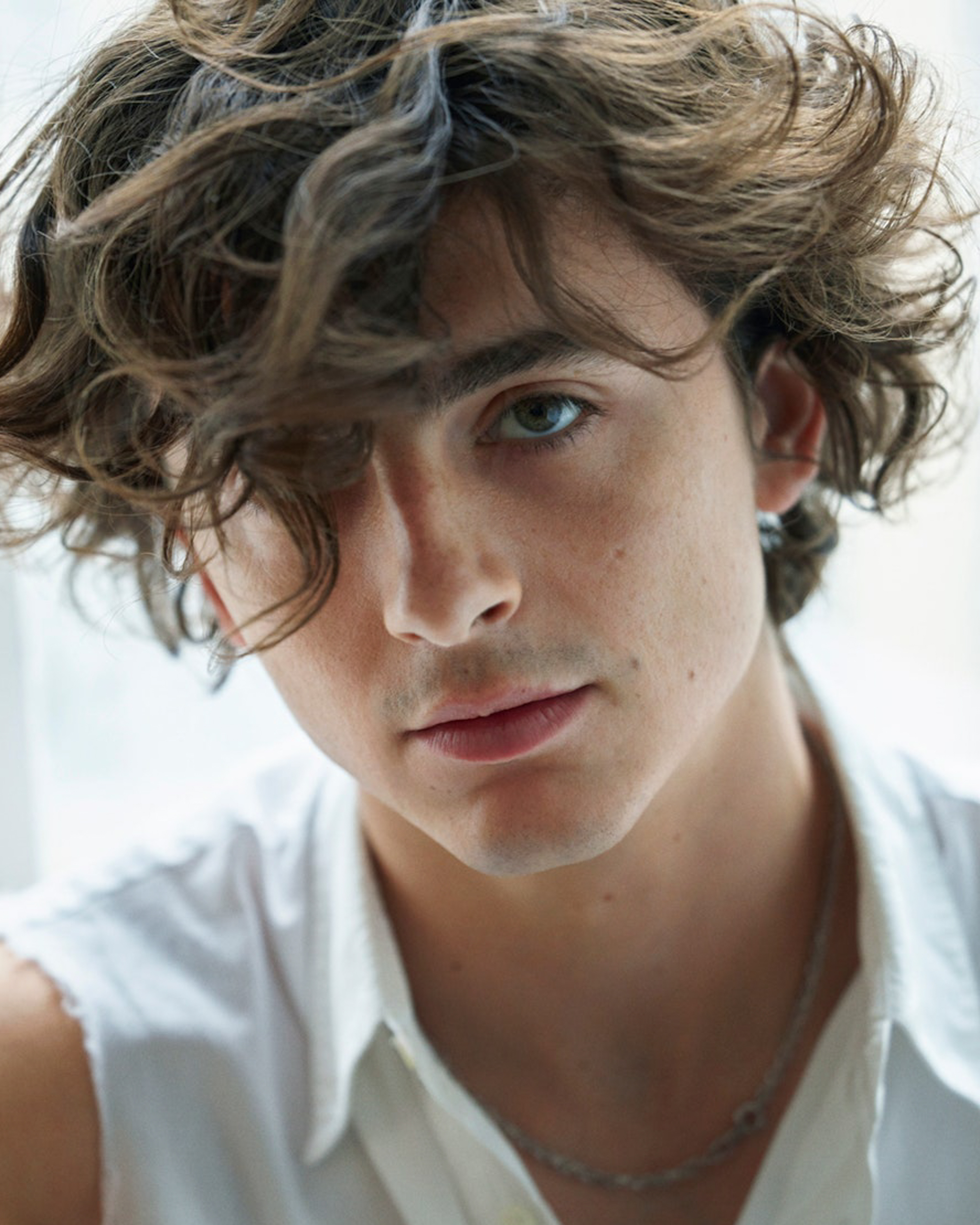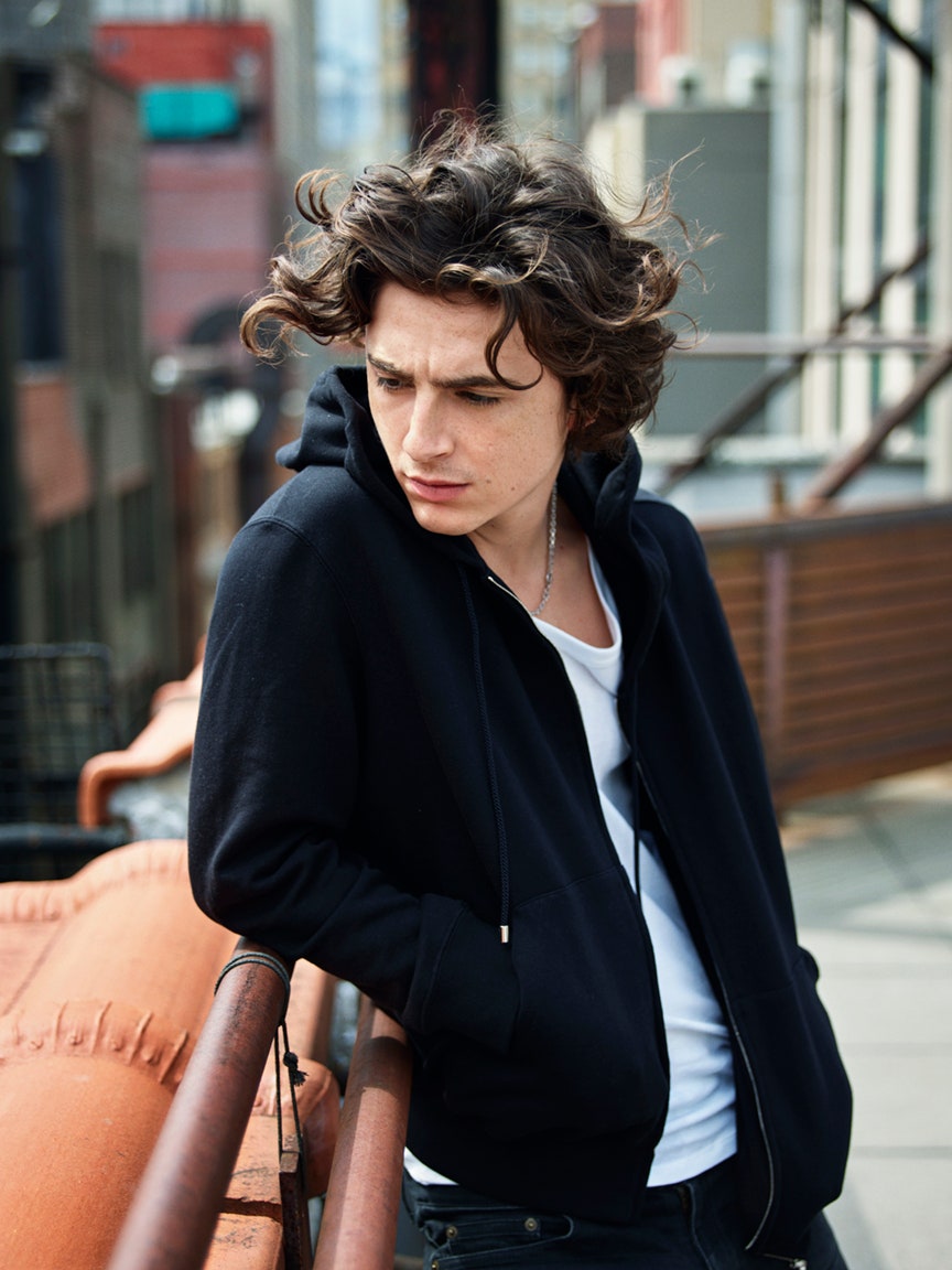 Timothée Chalamet rarely gets grilled about his beauty routine. Still, there’s really no escaping the question of his exquisitely disheveled hair. When we meet on a drizzly spring morning in New York, he’s ensconced in a squishy black leather armchair and dressed in all black—Nike tee, workwear pants, Craig Green sneakers—and his gently mussed, side-parted curls are undeniably the main event. “You’re actually the first person to ask me about my hair. What’s the secret?” he repeats, bemused by my opener. “There really isn’t one. When I wake up, it’s a roll of the dice,” says Chamalet, preempting my next question: “And I get my hair from my dad.”