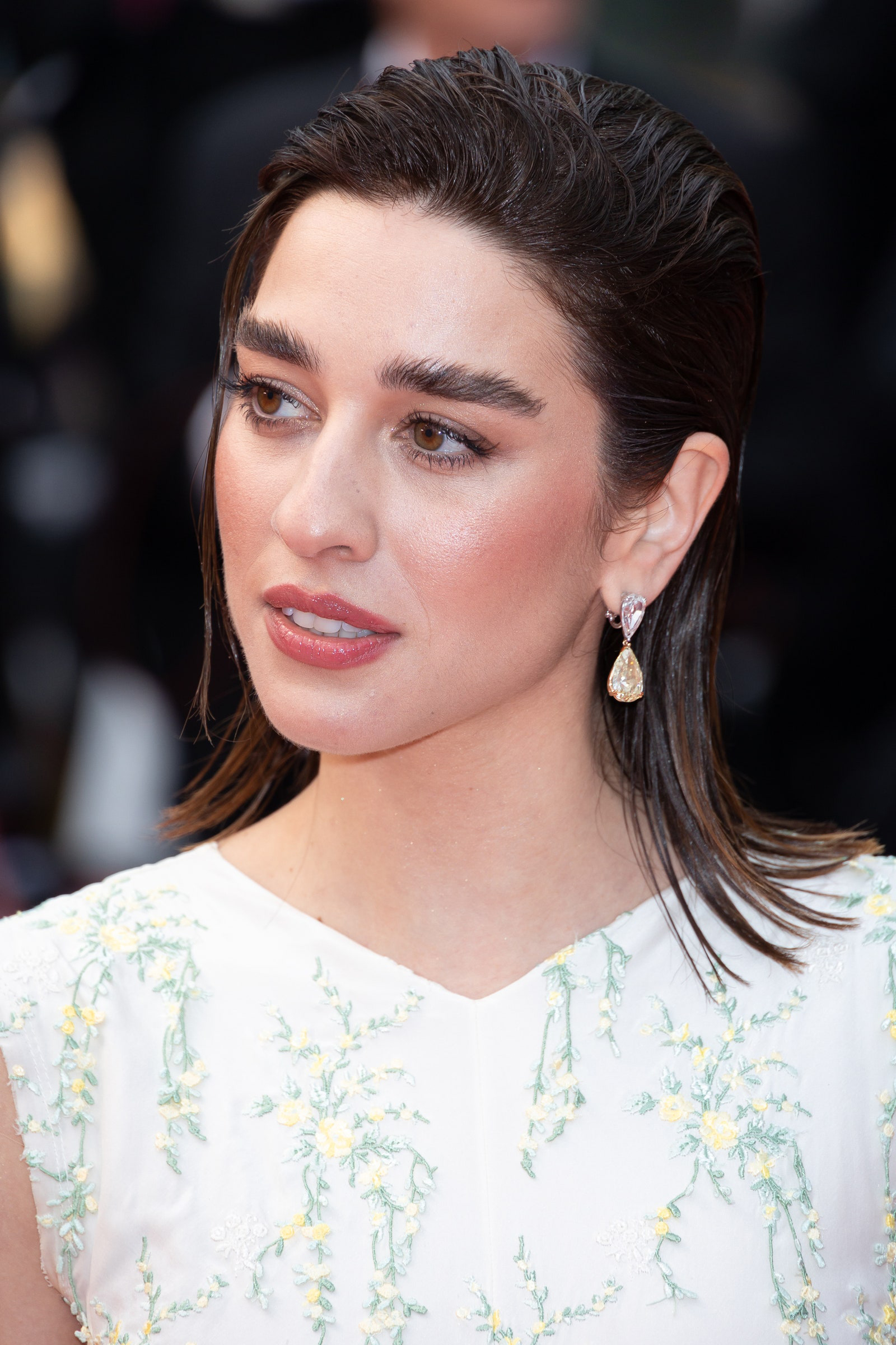 The cool girls are bringing ’90s hair to the French Riviera. At this year’s Cannes Film Festival, we’ve seen Dua Lipa’s mall bangs channel Pam Anderson and Helen Mirren’s blue dye job make her the queen of red-carpet grunge. Only adding to the fever around fashion’s favorite era are the actors and models—namely, Laura Harrier, Iris Law, and The White Lotus’s Simona Tabasco—serving up slicked, flipped hair. It was at the premiere of Hirokazu Kore-eda’s film Monster last week that the aforementioned trio aligned on the elevated wet-look style.