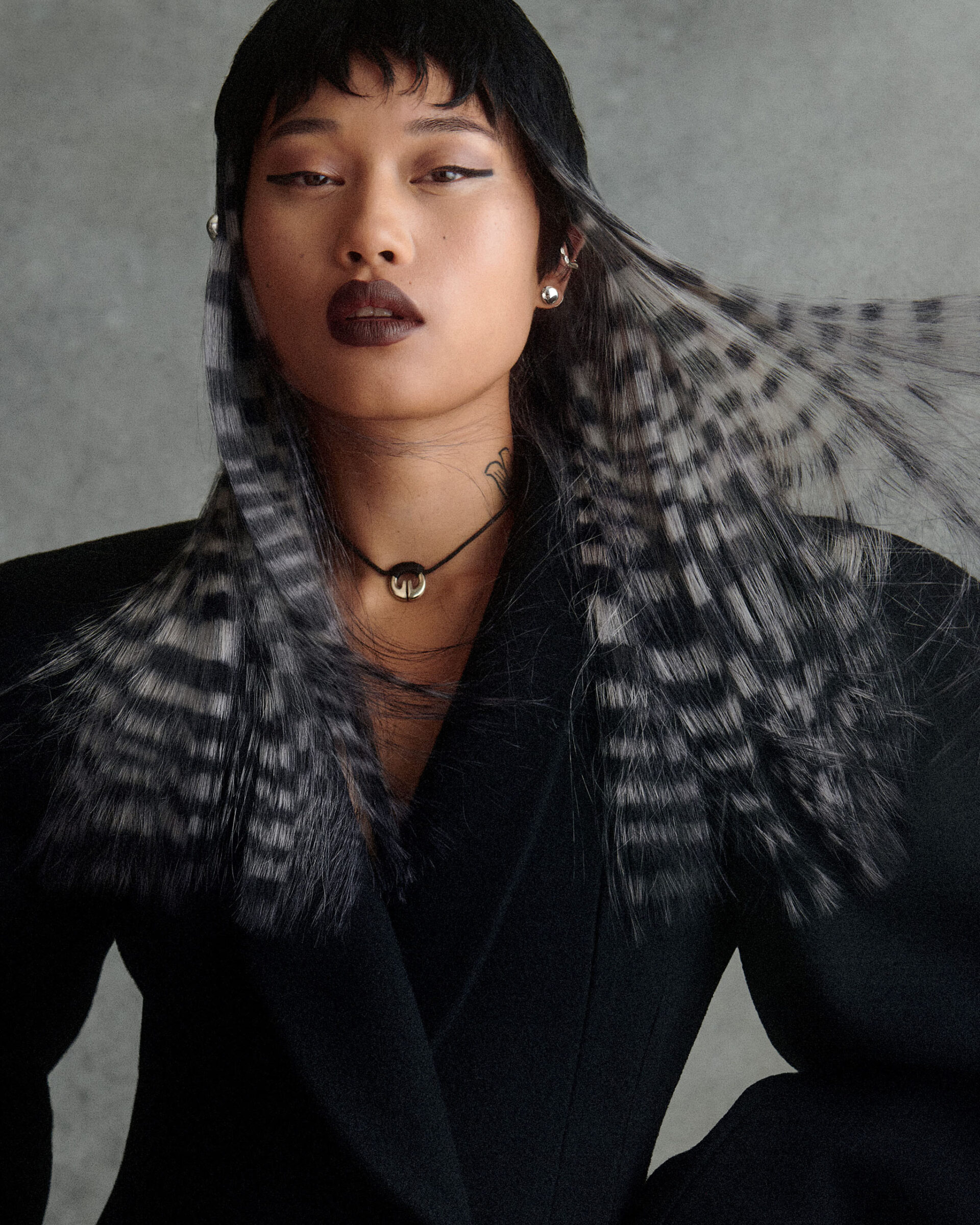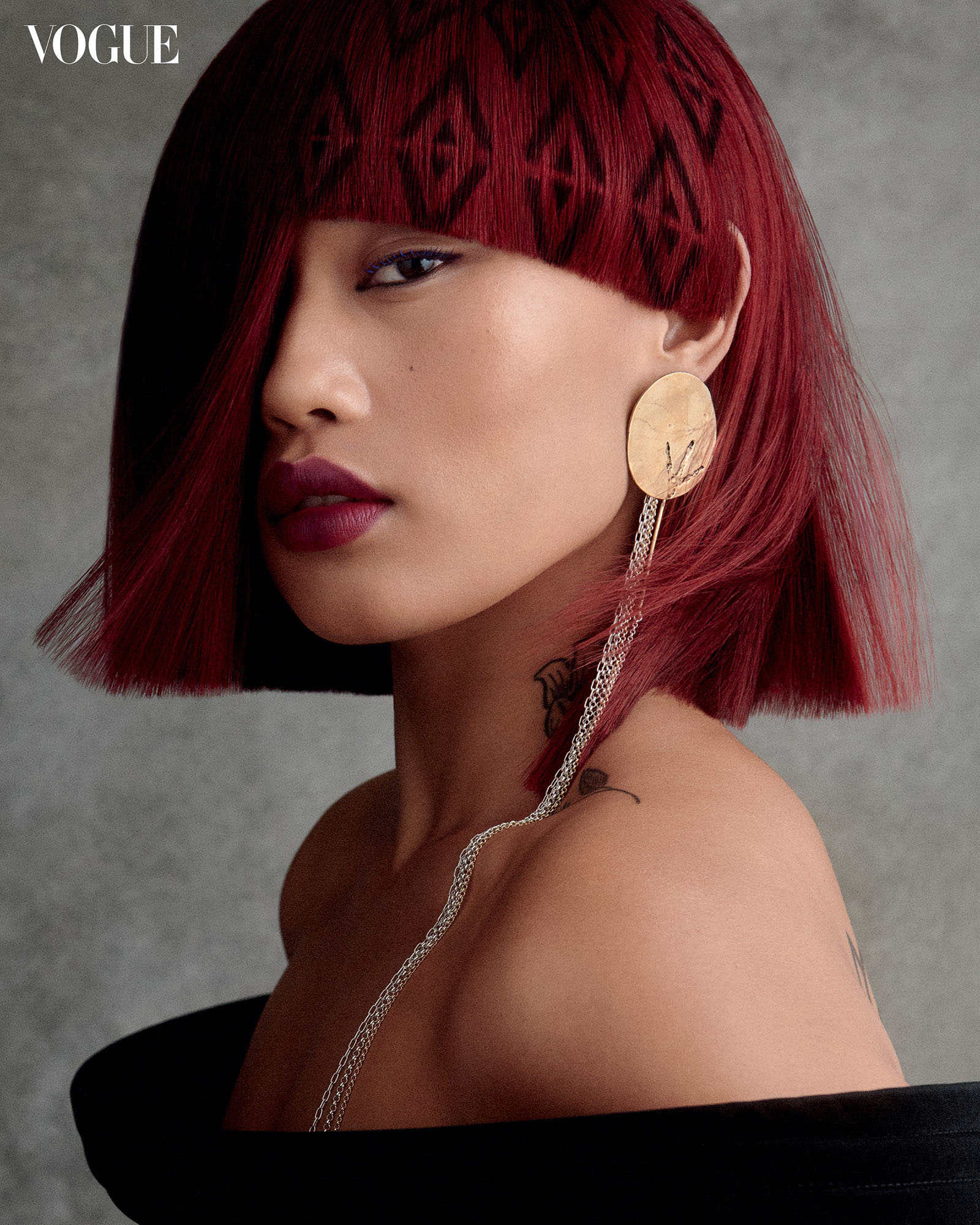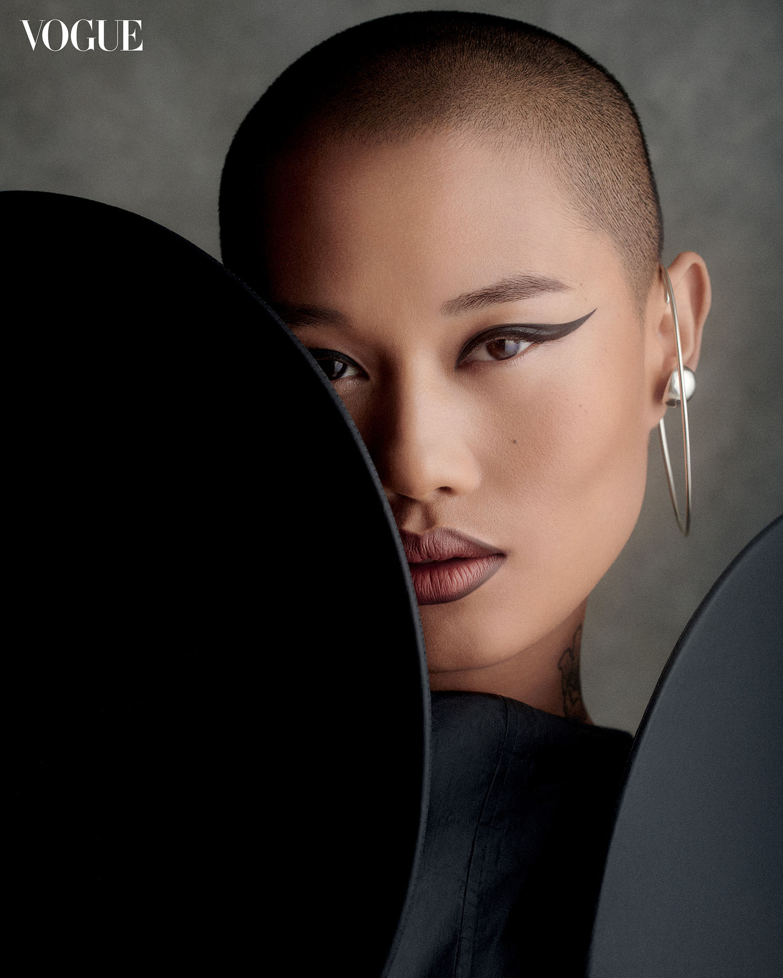 BRADLEY SHARPE coat, NARRA STUDIO necklace, DEA RAIL JEWELS earrings and ball ear cuff, GRAEDANCE thin ear cuff, FREYA DOUGLAS FERGUSON ring. Photo by Phillip Papadis for the Vogue Philippines December 2023/January 2024 Issue
