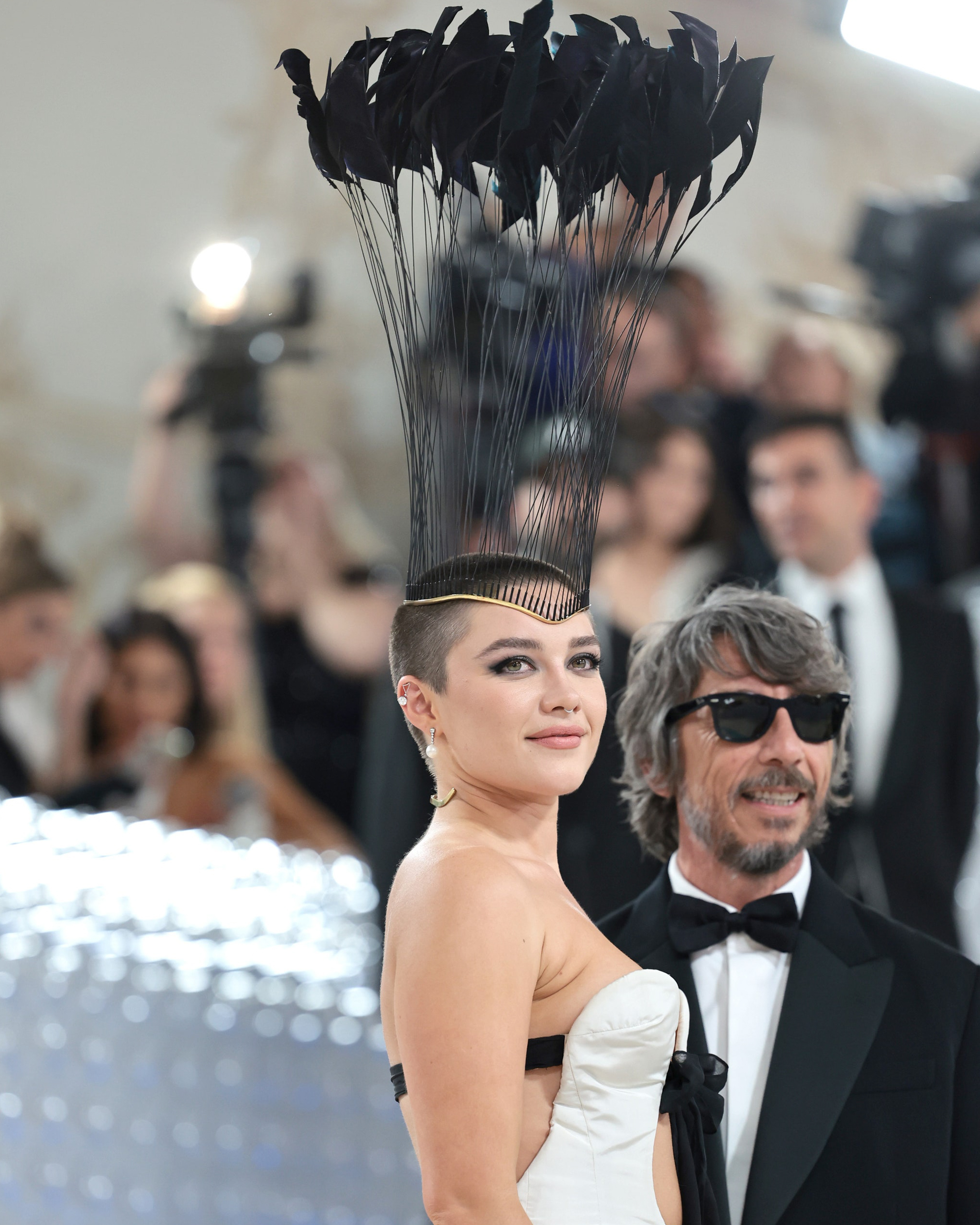 If Florence Pugh is renowned for her out-of-the-box updos (and she is), tonight’s Met Gala steps served as a platform for aesthetic subversion. The actor parted ways with her lengths ahead of the ball, stepping out in a brunette buzzcut that put her penchant for idiosyncrasy center stage.