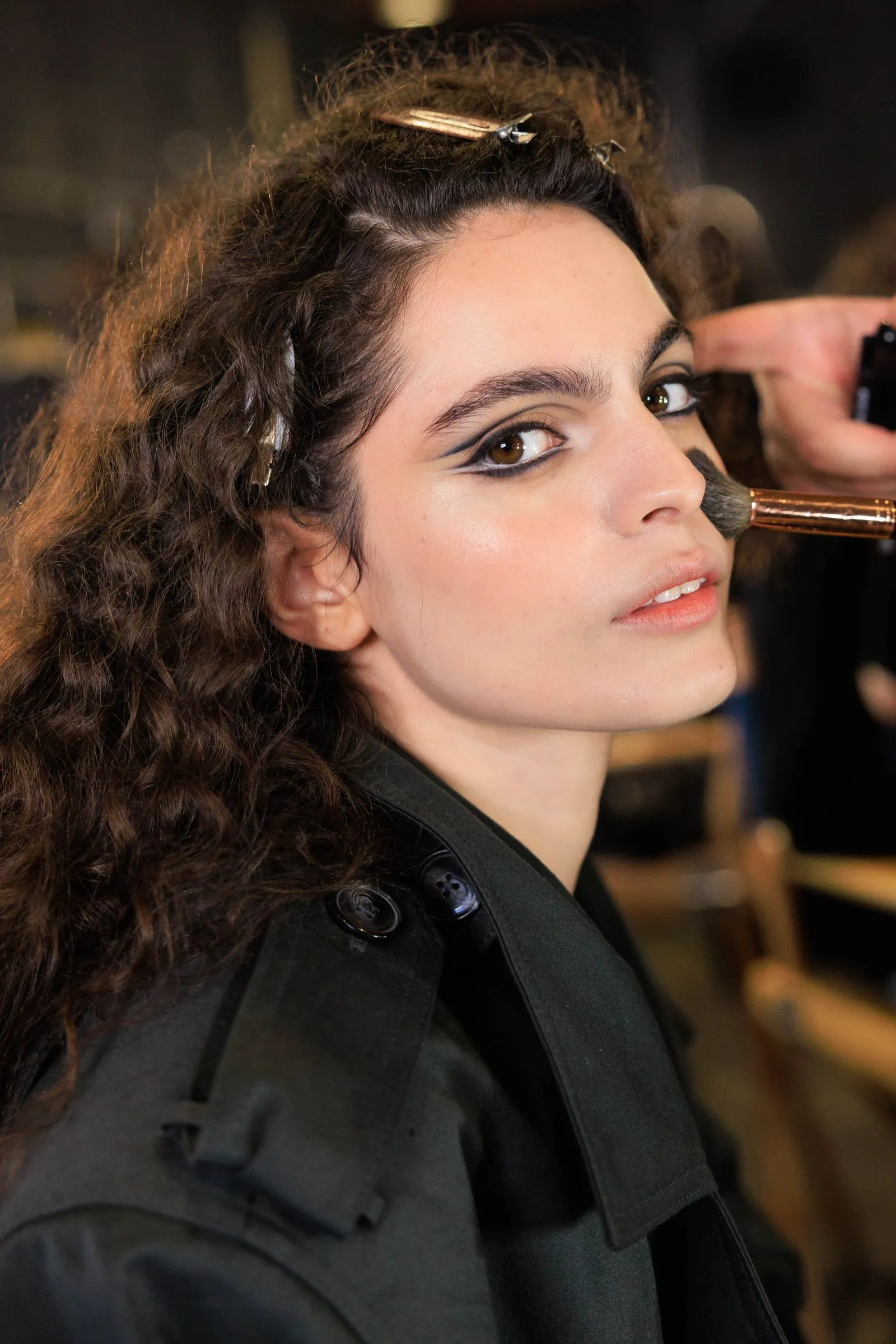“To me, this act means Stanley Kubrick’s Barry Lyndon and Sofia Coppola’s Marie Antoinette,” says Paul. Some models wore wigs, but others—like Grace Elizabeth—had their hair curled with a ultra-thin curling iron and brushed out. Ella Dalton and Luna Yohannan, on the other hand, had their natural curls enhanced with the Curl Manifesto line and worn as is. “Everything is soft,” Paul says. “It’s incredibly romantic.”
