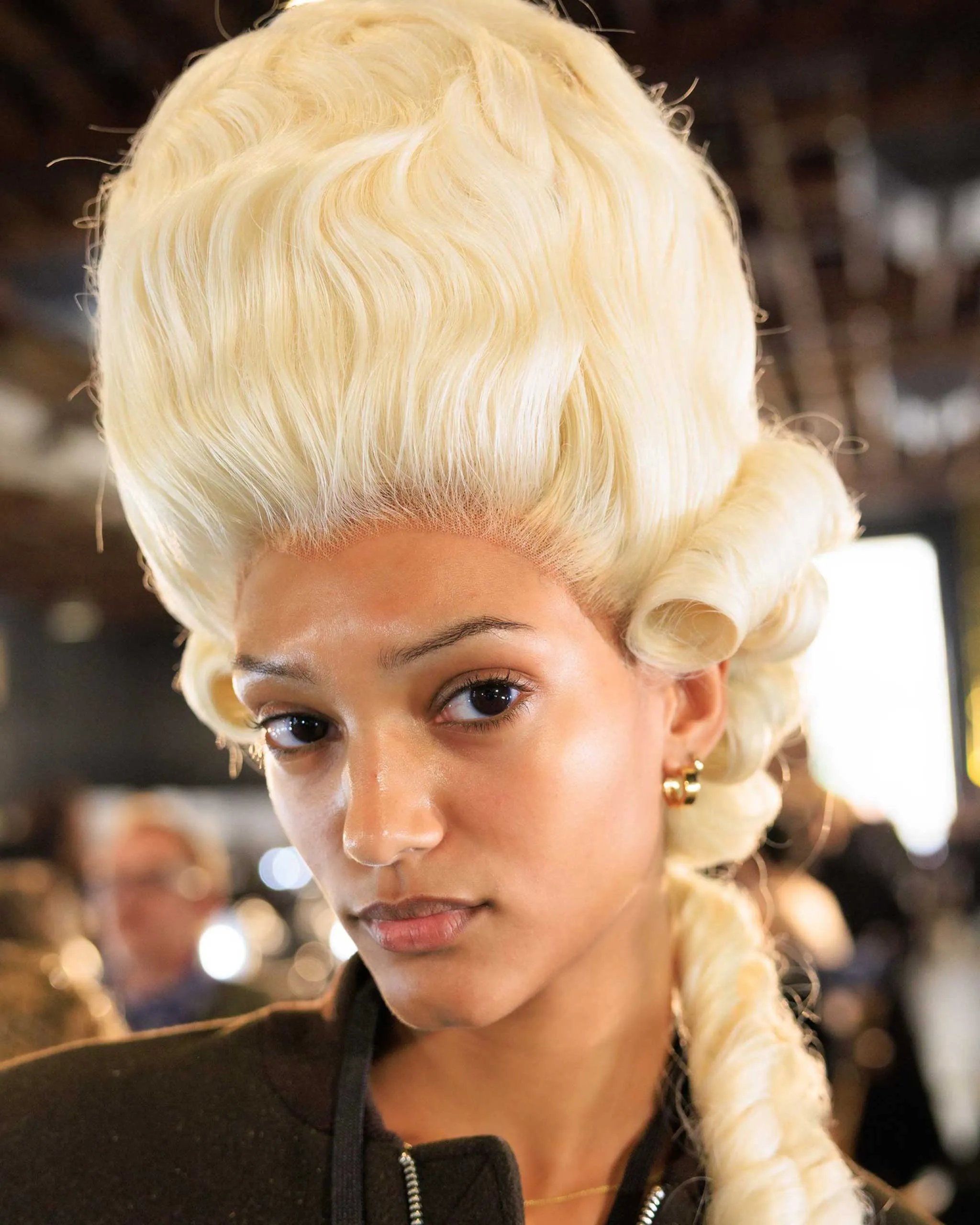 Denis Villeneuve’s Dune franchise may seem like an unlikely place to find beauty inspiration, but Paul says not so fast. Models like Loli Bahia, Imaan Hammam, Paloma Elsesser, Adriana Lima, Jill Kortleve, and Joan Smalls all got what Paul calls the “weathered” treatment when it came to their hair. For some, that meant intentional frizz, others got a wave, or treatment that looked like clay to mimic life of Arrakis—Strong Hold Texturizing Hair Spray needed to keep it all in place. “It’s a bit rough, but don’t think that means it isn’t glamorous.” The future, it turns out, is bright after all.