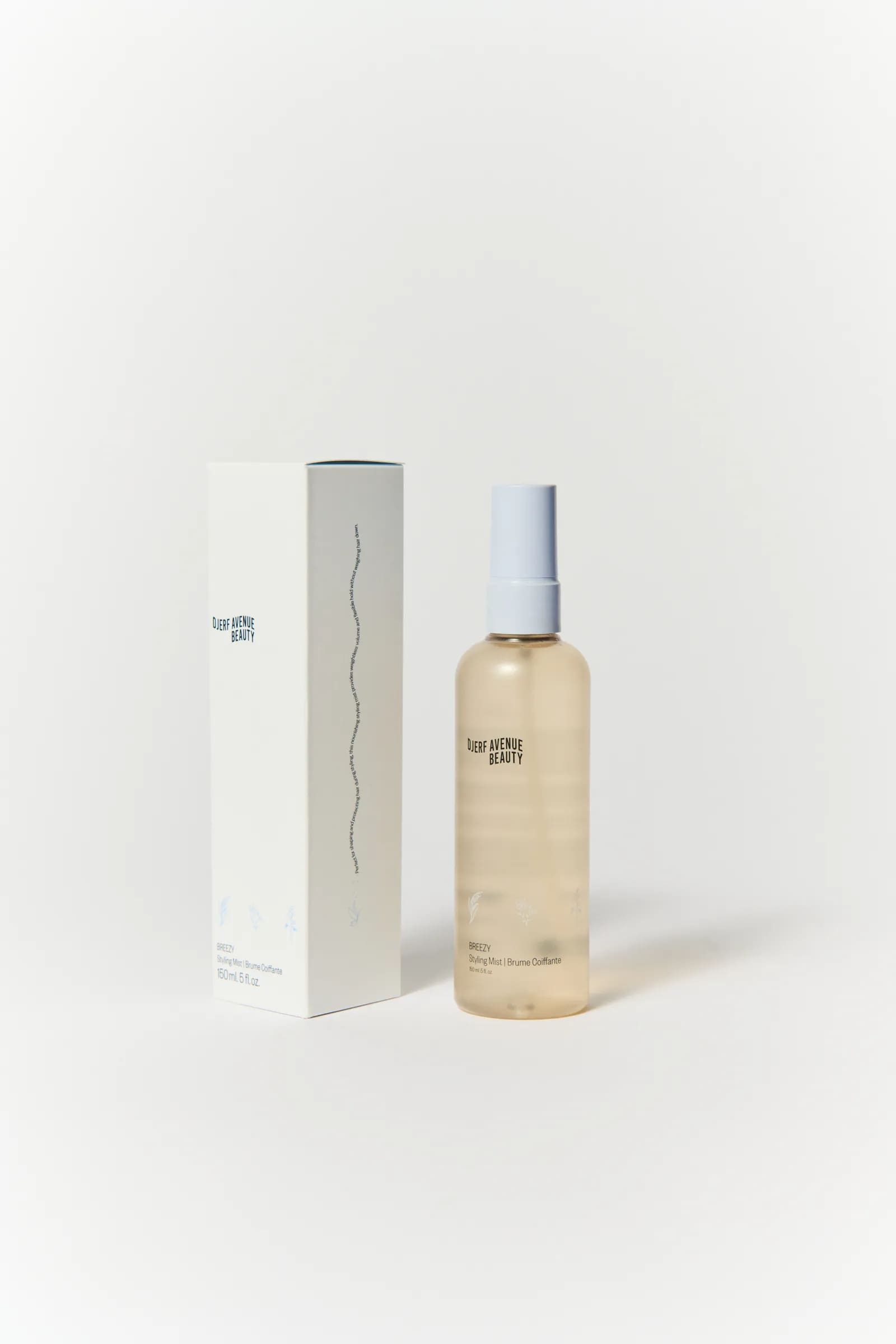 The Breezy Styling Mist promotes fullness and a soft, textured finish, while also acting as a heat protectant. With sunflower seed extract, aloe vera, hydrolysed wheat protein and panthenol, it’s a super lightweight formula that nourishes the hair while adding that all-important oomph. It is, says Djerf, the key to her signature hairstyle.