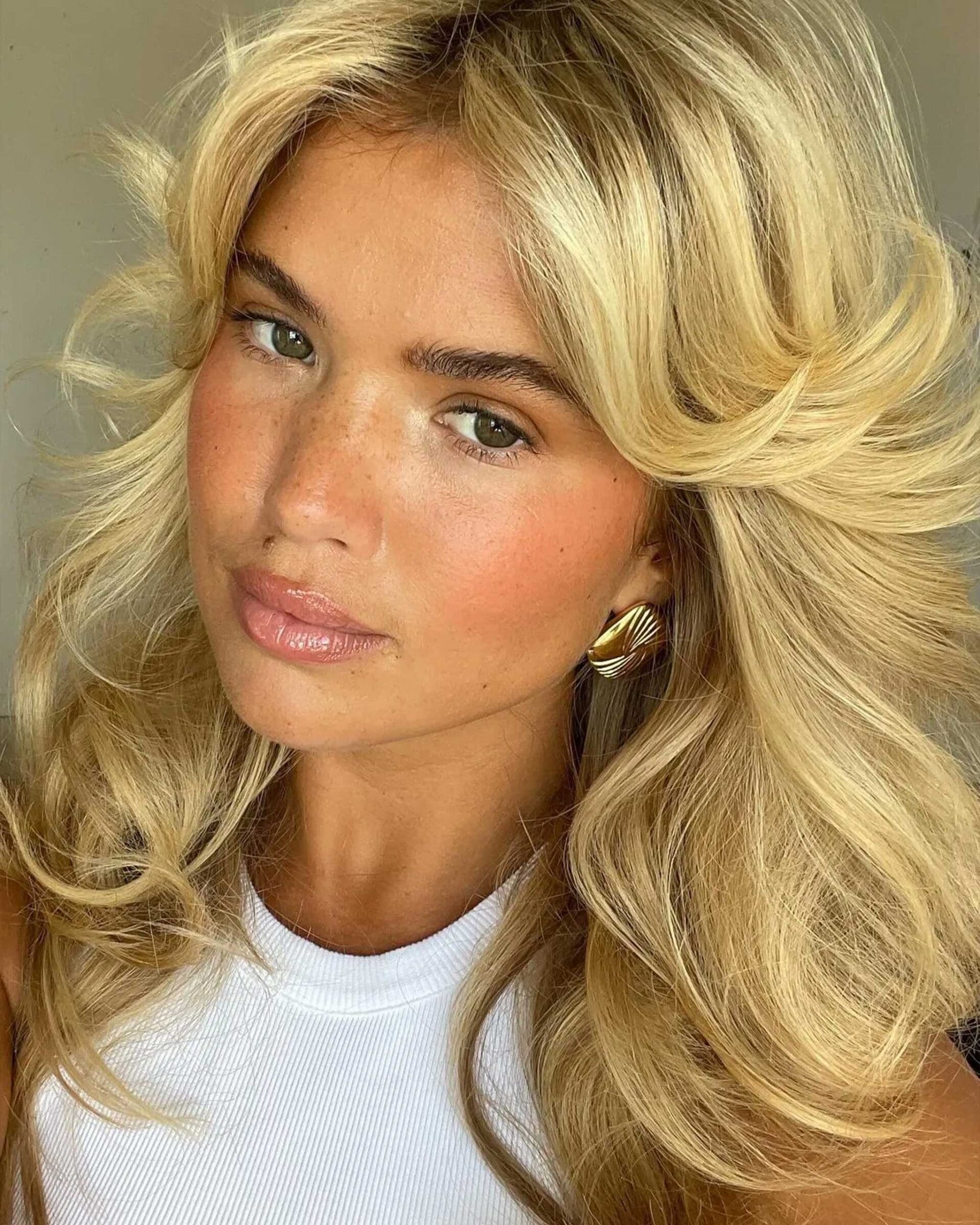 Volume, movement and a great set of bangs: so often the holy trinity when it comes to amazing hair. Look no further than the Instagram account of Swedish-born content creator, Matilda Djerf, for stellar evidence of all three. Serving her three million followers snaps of her modern Farrah Fawcett hair – complete with flicked-out bangs, sun-kissed blonde and layers – on the regular, now she is launching hair products.