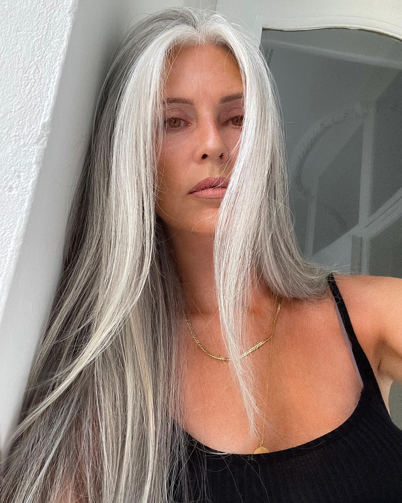 Rotger adds that it’s the easiest way for those to work in gray hair into their look. “For those that want to fully embrace their gray but are in an awkward [and] in-between stage with their previous color or just not quite ready to commit to full gray, you can do this and then just let it grow,” she says. “If you are full gray but feel [your color] is a little dull, painting on a couple of highlights will be the perfect way to go. Overall, it’s a noncommittal way of taking care of the grays while keeping it dimensional and damage-free.”