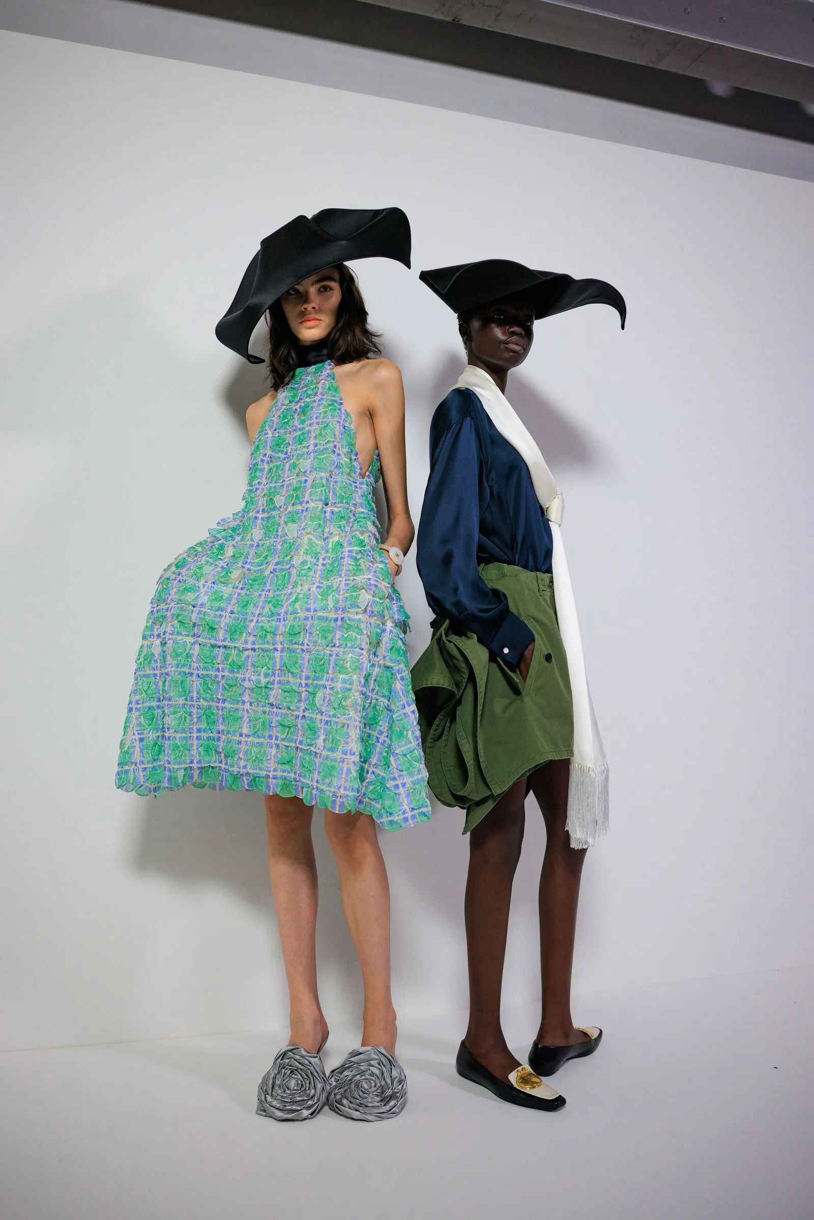 As weeks passed and the collection came together, “it was clear that we didn’t need a makeup statement,” Philips says. From the collection’s giant-heeled rosette slippers to the enormous bows and delicately embroidered collars, the message was clear to him: “Let’s focus on the clothes and give it a pure statement.” On Sunday they finalized the look with hairstylist Guido Palau, who did natural hairstyles, with some cuts and bobs created just before the runway today. Manicurist Ama Quashie’s cleanly manicured nails from the men’s show inspired Anderson. “Mr. Jonathan, he was very clear—he was like, ‘Oh, just buffed,’” says Philips. Today models have a slightly glossier effect on their nails, which Quashie achieved using Dior nail polish in Muguet. (Alternatively, a coat of Dior Nail Glow will do.)