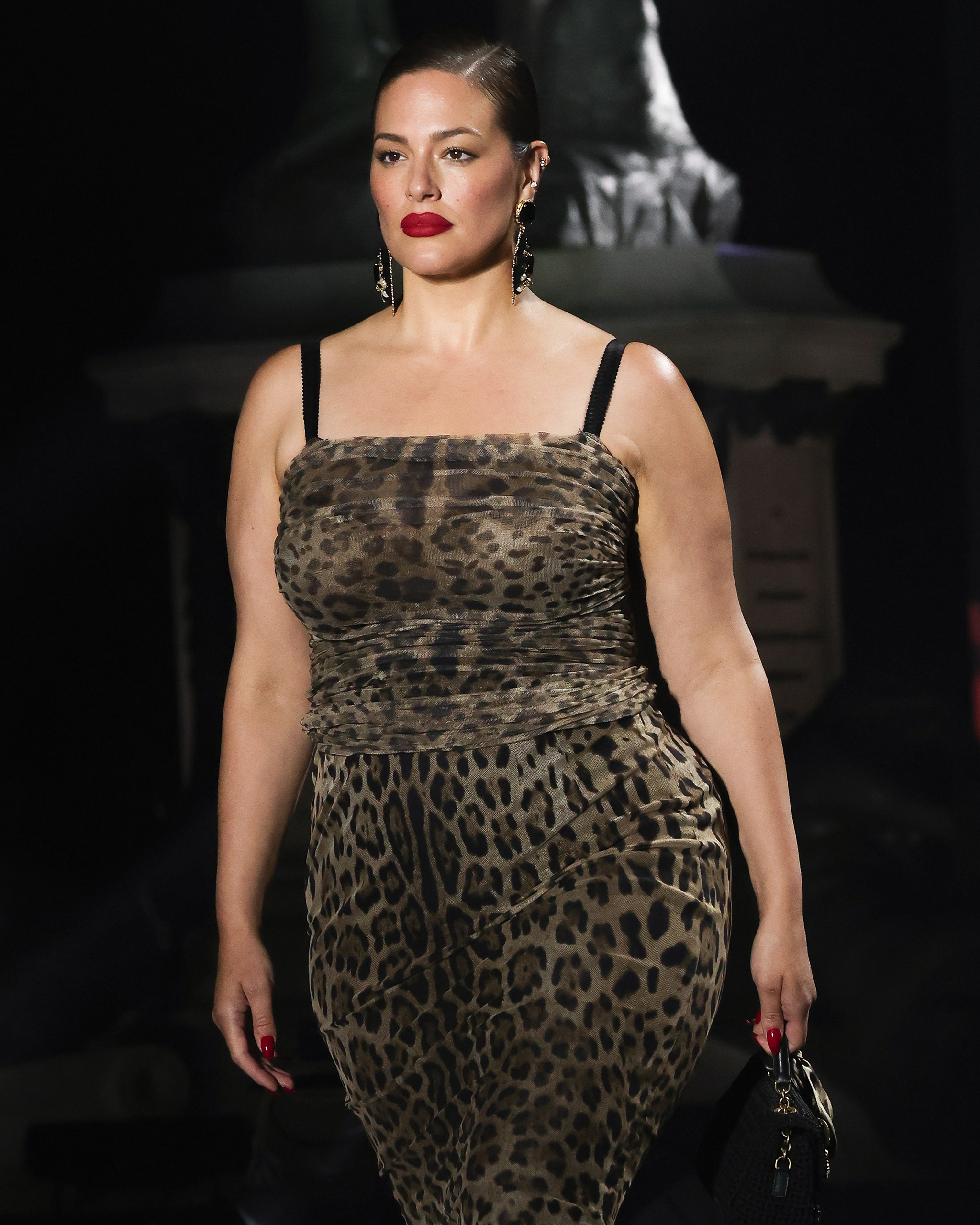 Legendary hairstylist Sam McKnight wanted the hair to serve as an ode to the “classic power chic” of the ’90s. “The look tonight is sleek, strong with ultra glossy chignons,” he said.