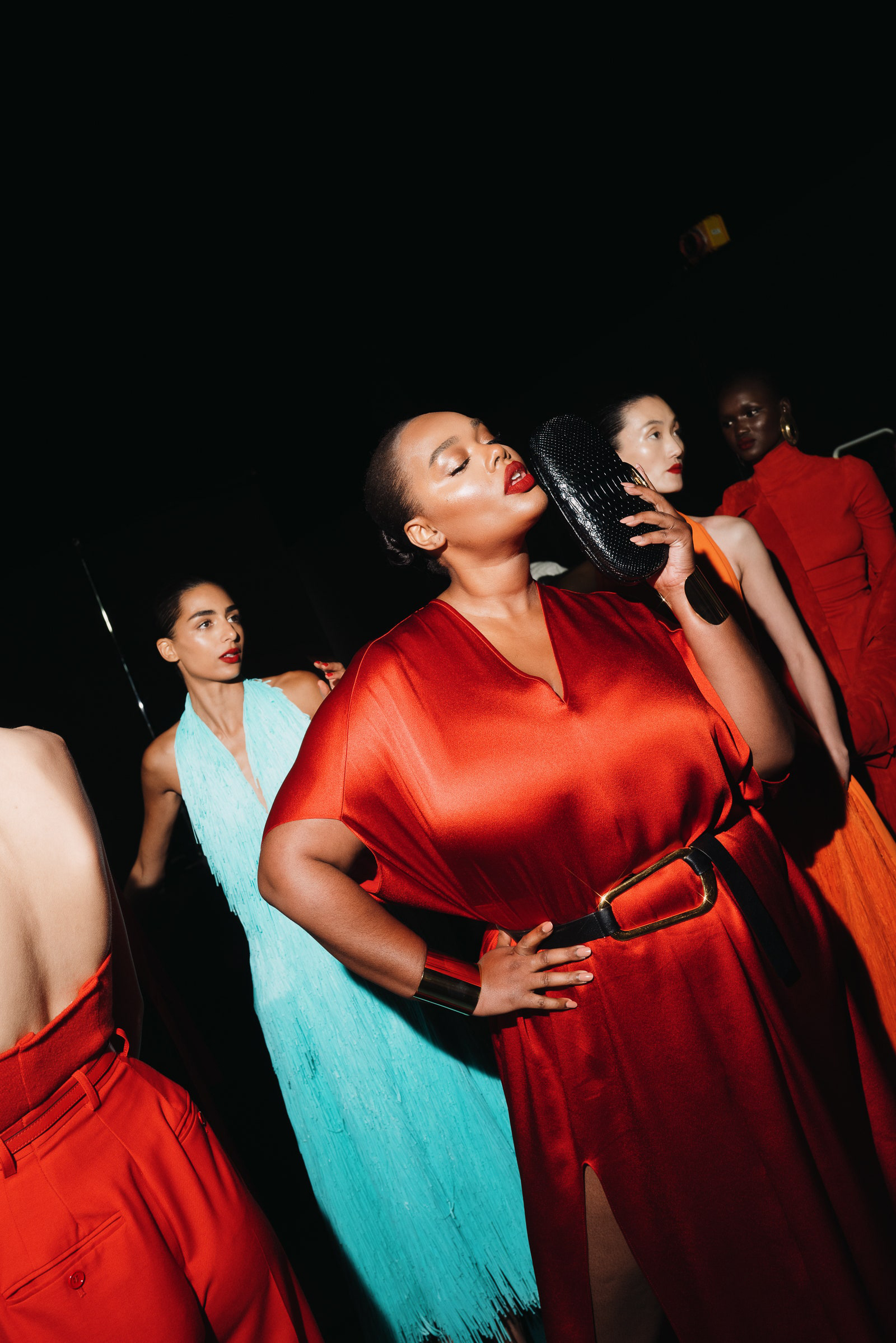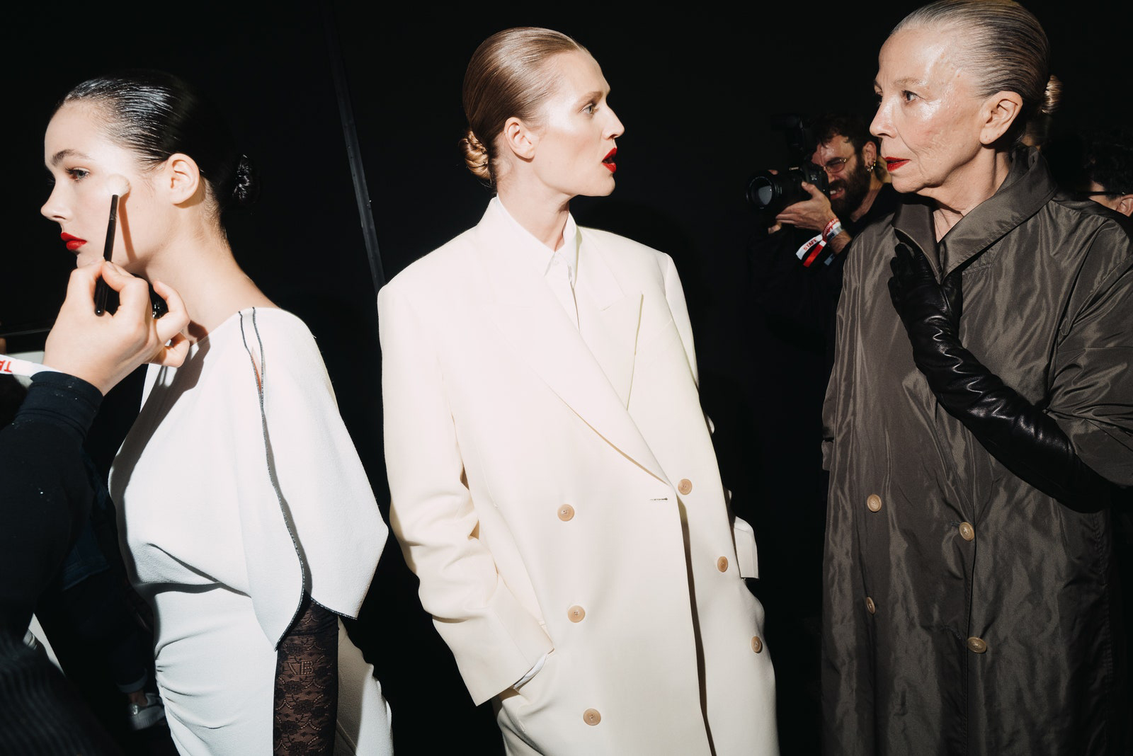 A healthy soft-focus, skin-like finish was the aim. Using the Divine Skin Essence to prep the skin, McGrath then used the second skin Skin Fetish: Sublime Perfection Foundation to help even out the complexion. The rose-tinted Divine Blush: Legendary Glow Colour Balm was perfectly paired to each of the model’s skin tones for an elevated flush of color with a dewy, luminous finish. While the light-as-air blurring Sublime Perfection Setting Powder and Skin Fetish: Sublime Perfection Blurring Under-Eye Powder were used to hold the timeless looks in place.