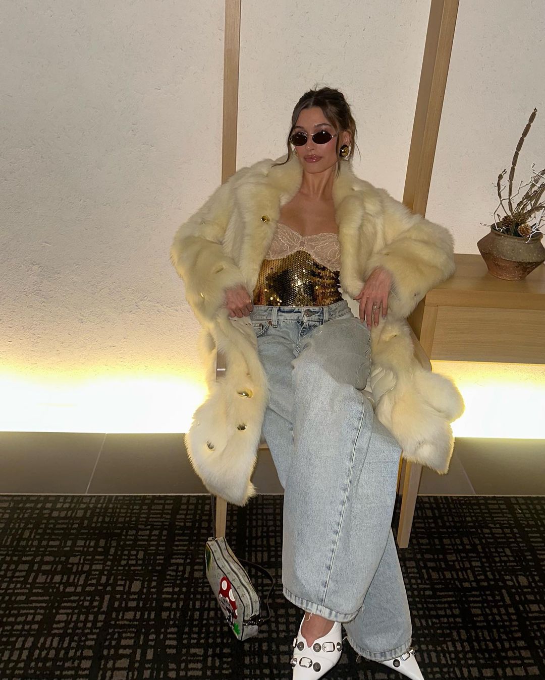 How best to nod to the festivities via your beauty? Red lipstick and metallic eyeshadow are always a popular choice, but for Hailey Bieber, it’s all about a nod to shimmer and shine with the help of a make-up artist favorite: eye gloss.