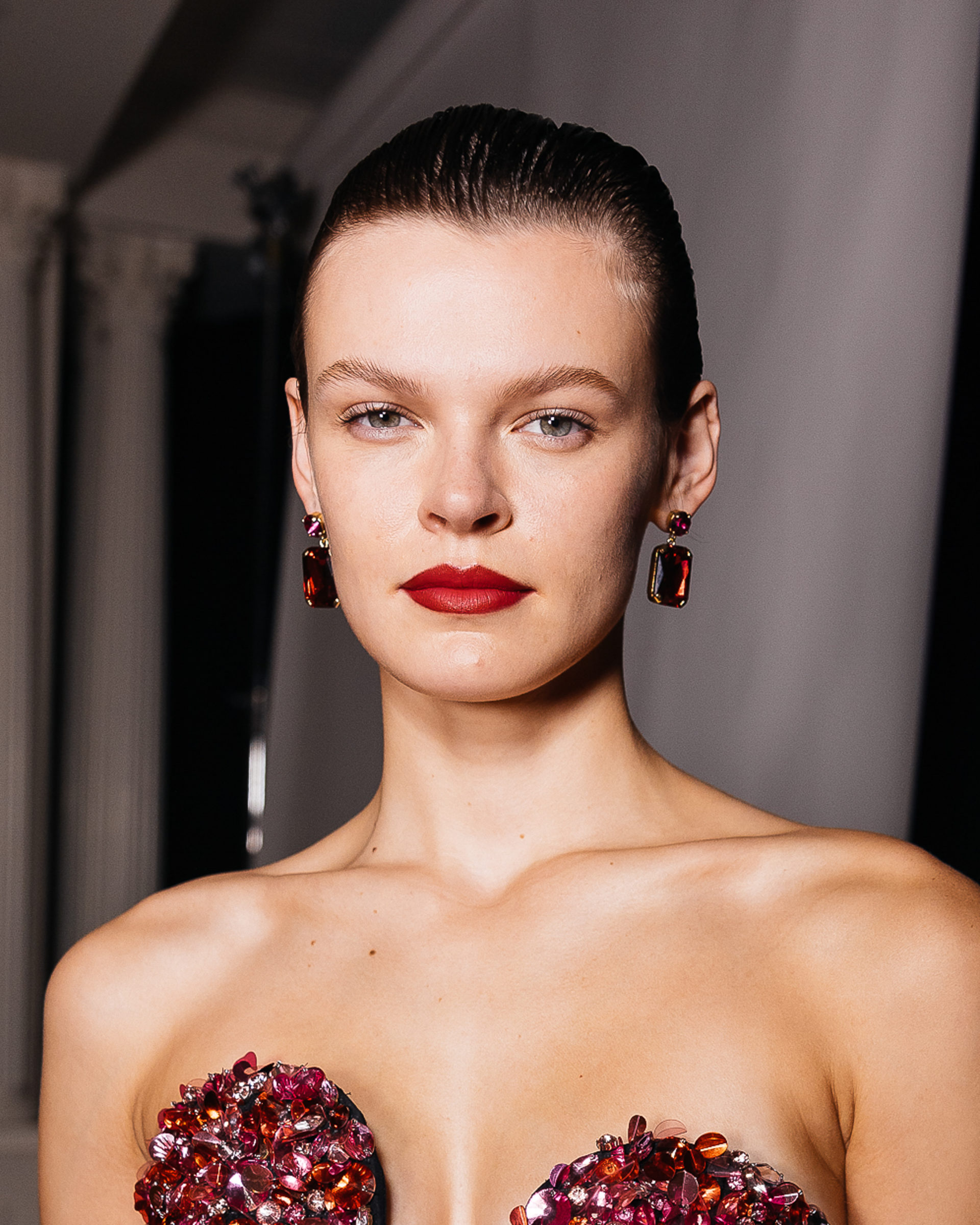The word “classic” often prefaces red lipstick because it just so happens to be the best way to describe something as objectively timeless as the act of painting, drawing, or slicking a slash of crimson color across your mouth. Marilyn did it. Madonna did it. Sade did it. Rendered in a matte, satin, or glossy finish, a cherry pout looks as good with a cocktail dress as a white t-shirt and jeans—and it also happens to be an incredibly easy way to add a “festive” element to any outfit this time of year. Because red lipstick has been a centuries-spanning makeup staple, there are a number of ways to achieve it: Cleopatra was said to have crushed carmine beetles and ants to get just the right shade of scarlet, while Representative Alexandria Ocasio-Cortez swears by the simplicity and staying power of a single swipe of liquid ruby lipstick as “the best way to really look put together.” Makeup artists overline, and blot, and powder, and layer but when it comes to getting the perfect color, texture, and finish for the holidays, when time—and patience—are at a minimum, these four easy steps should do the trick so reapplying your lipstick isn’t one of the many things on your to-do list this week.