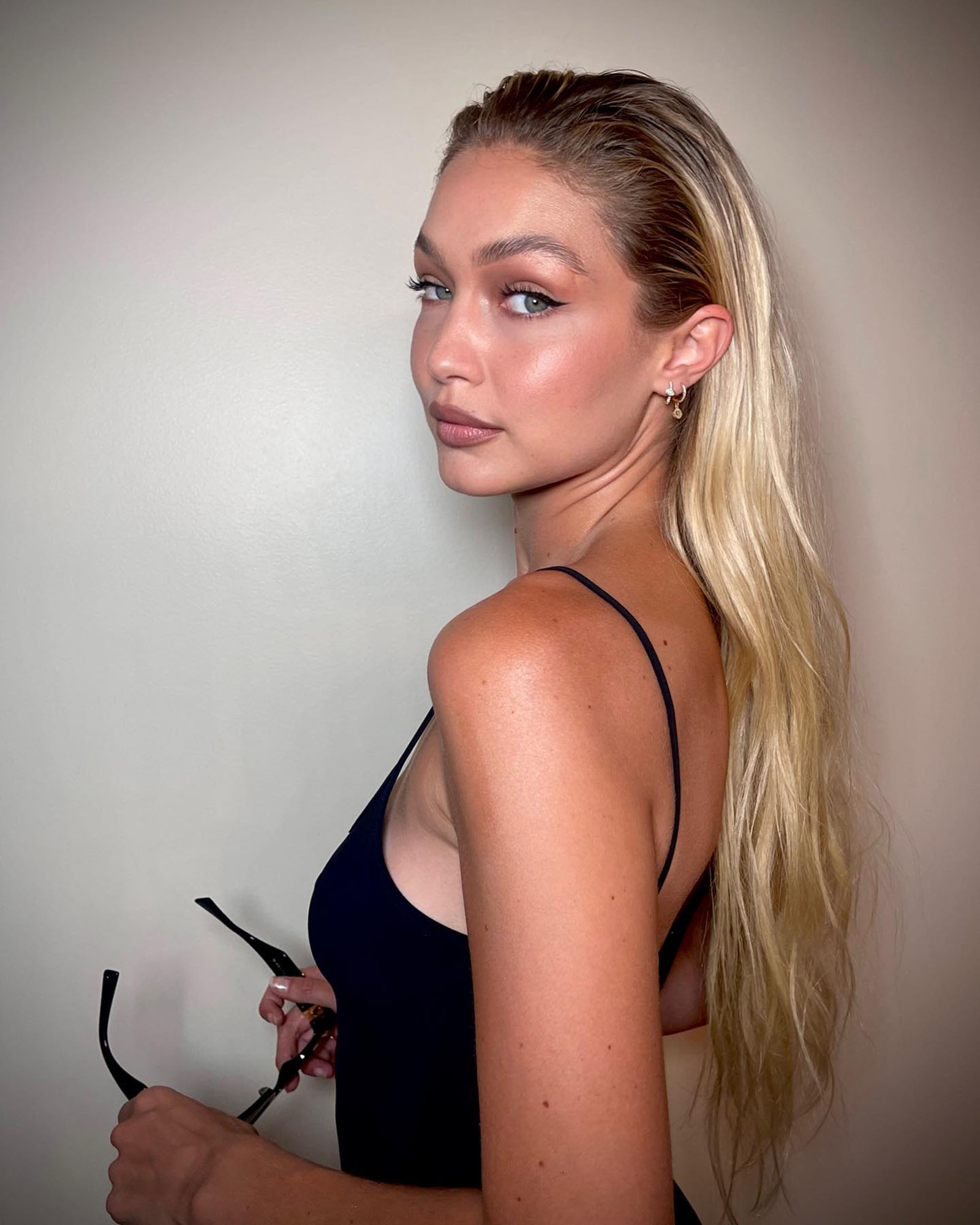 The pair have long favored neutral and latte shades on Hadid, since they’re tones that work especially well on her complexion and illuminate her eye color. This time round, Ta combined matte and metallic finishes to add dimension and light to Hadid’s face, while complementing her slicked-back, beachy waves.