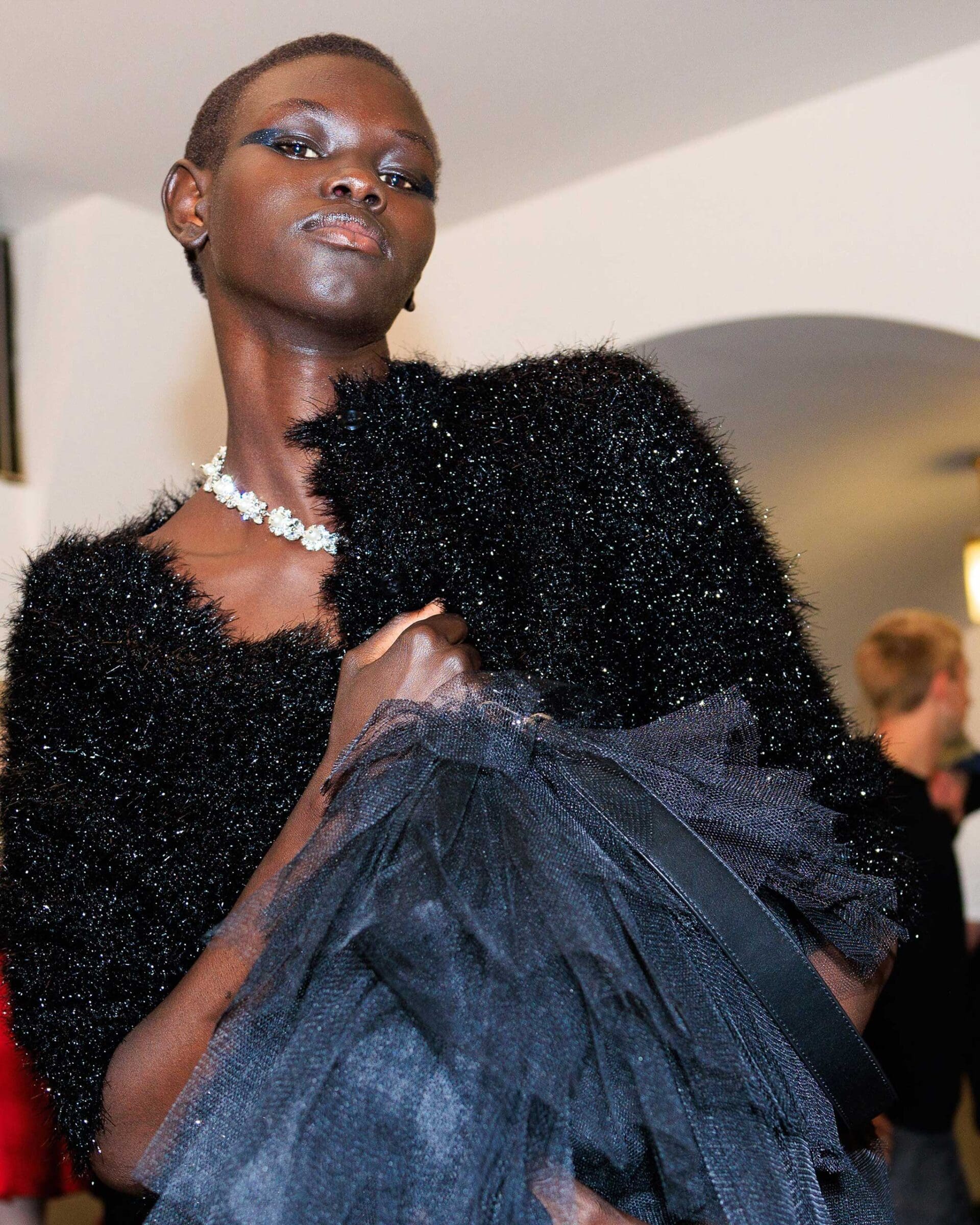 “Often actors do their own makeup, so we wanted to bring a touch of that energy,” make-up artist Thomas de Kluyver says of the haphazardly drawn liner, red lips, and flawless skin seen on the Simone Rocha’s spring/summer 2025 runway. “I was inspired by the idea of different characters in performance—there are nods to dancers and choreographers, Pina Bausch and Michael Clark, so we used them as inspiration.”
