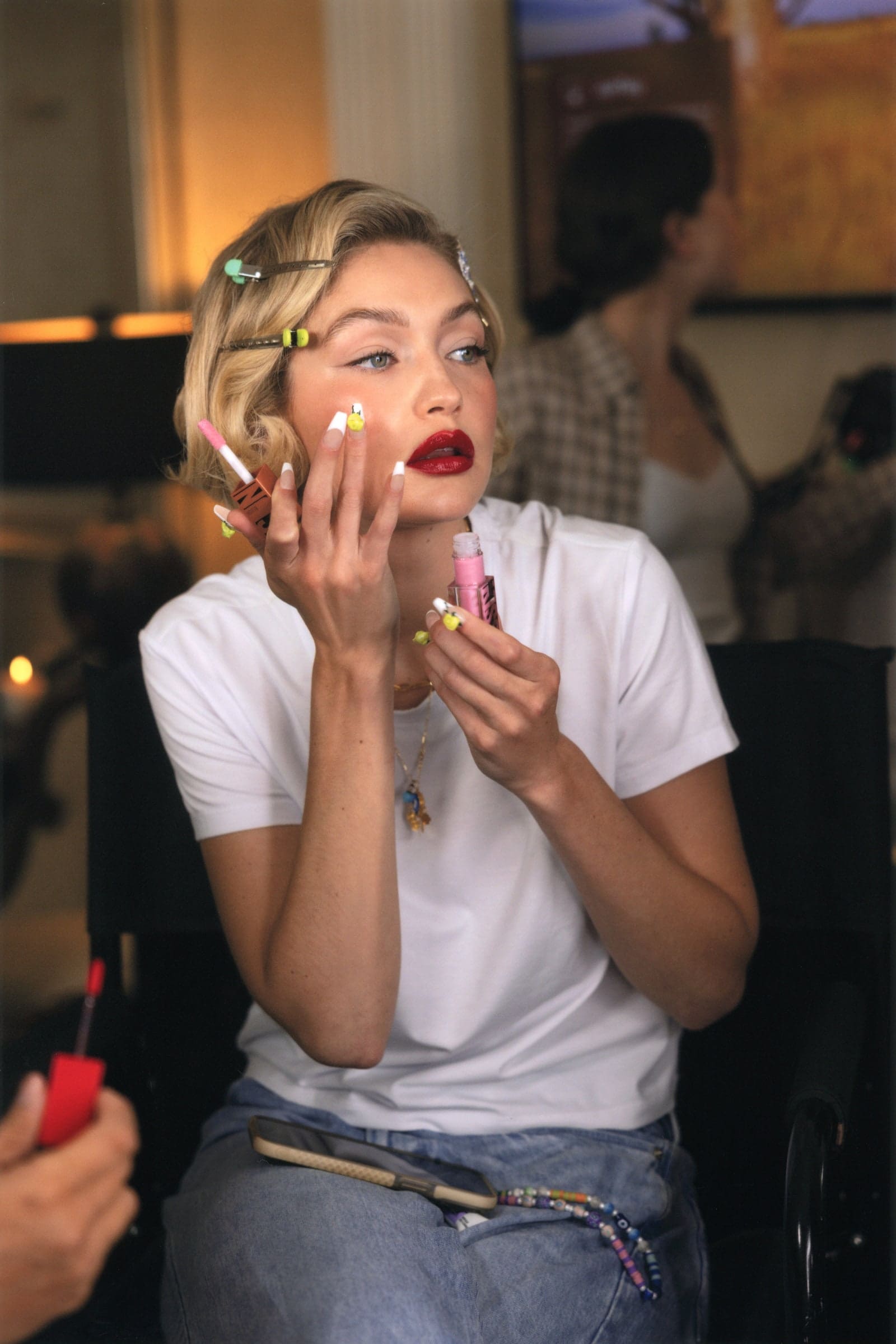 Hadid’s fun began with a red lip for the evening—“my favorite, Maybelline Vinyl Ink, which is glossy and will stay all night. It’s my favorite.” The rest of the Marilyn beauty came together naturally. A smudgey-flick of liner, her naturally full eyebrows, and a wash of color on her cheeks were some other beauty details. Then there were her defined lashes, courtesy of Maybelline New York’s just-released Lash Sensational Firework Mascara. This was the first time the inky mascara, which has conditioning B5 vitamins in the formula, has been seen on the red carpet.