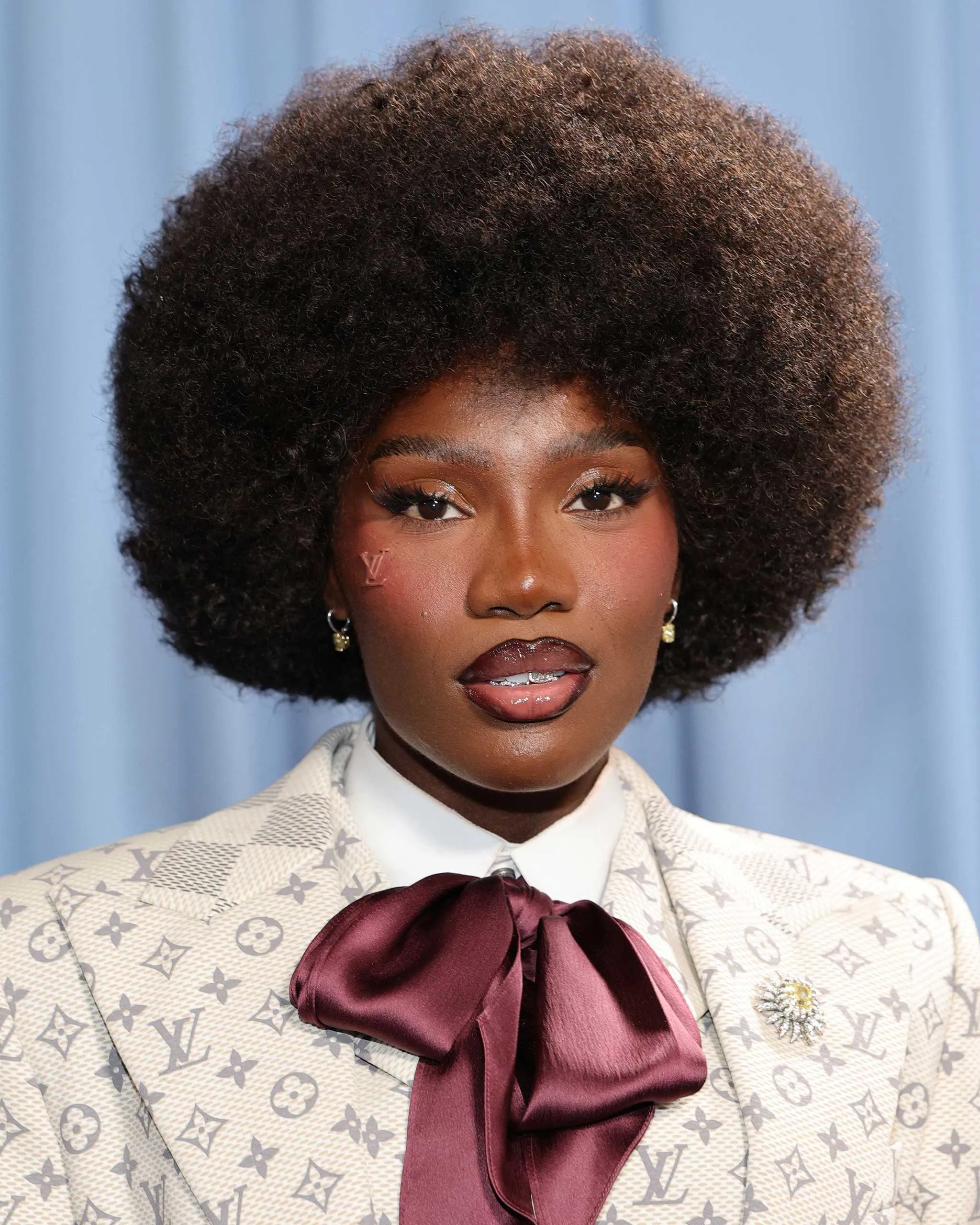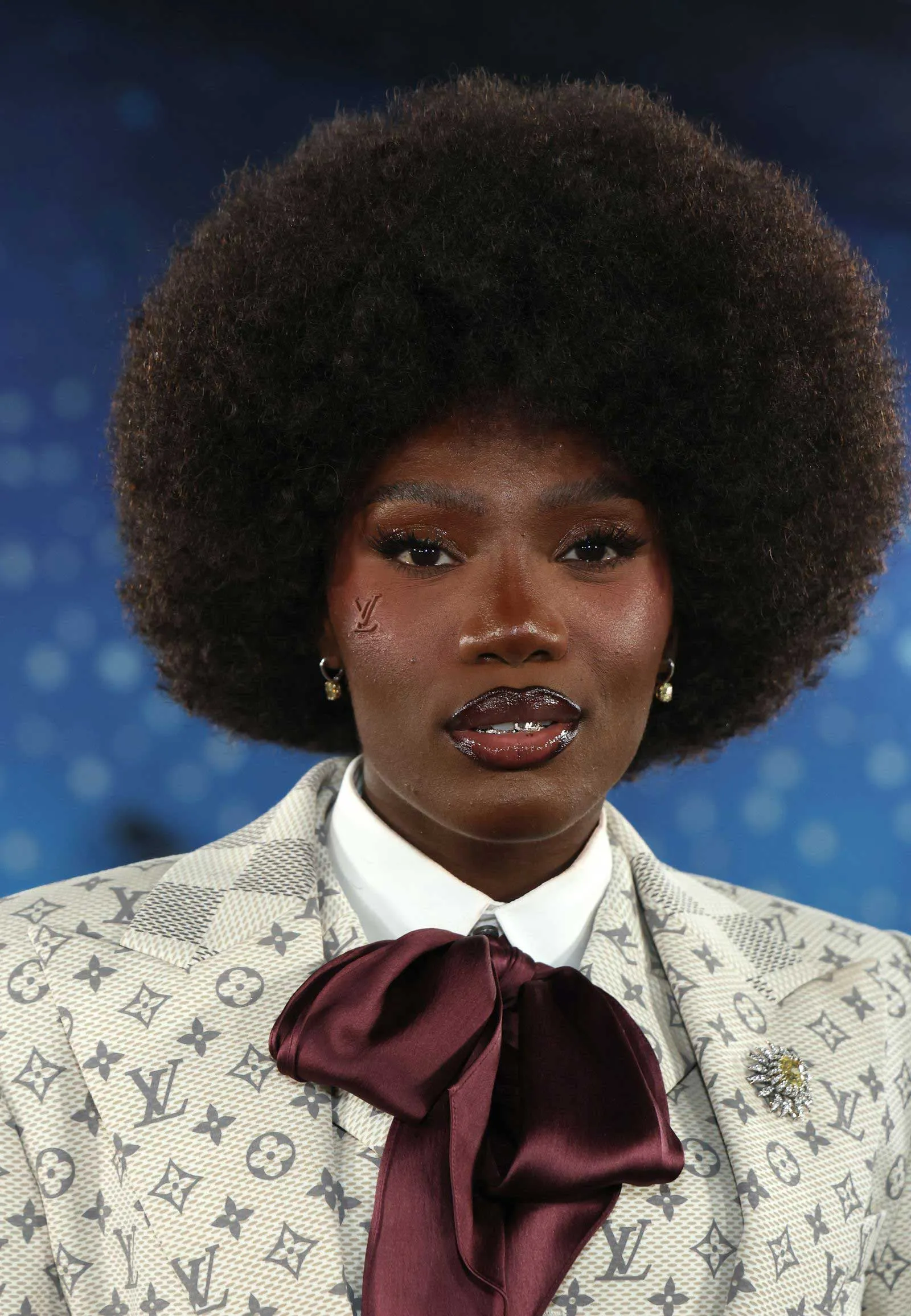 Lupita Nyong’o is no stranger to shimmer. For an extra splash of glamour the actress adorned her eyebrows with black and blue sequins – keeping her perfectly groomed skinny brow shape intact. These blinged-up brows complemented the jewels that carefully dressed sections of her long, loc ponytail. “[Black dandyism] has created space to reframe how we view elegance, especially in the context of Black identity. It’s about honouring the work of our ancestors – the dressmakers, the tailors, the ones who understood craft down to the thread,” her hairstylist Vernon François, shared with British Vogue ahead of the event.
