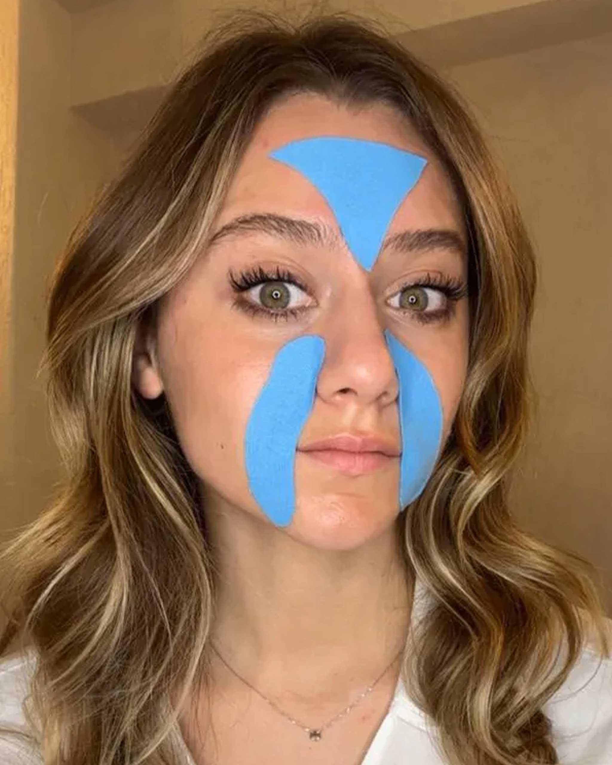 Whether you have sensitive skin or not, the thought of applying tape to your face is not especially appealing. The key to making it comfortable is to ensure you use kinesiology tape for children, or for those with sensitive skin. “The glue is gentler and the cotton more breathable,” says Gennari. “I have very sensitive skin. I get mine from Amazon or from specific websites that sell medical tape.” New hack: unlocked.