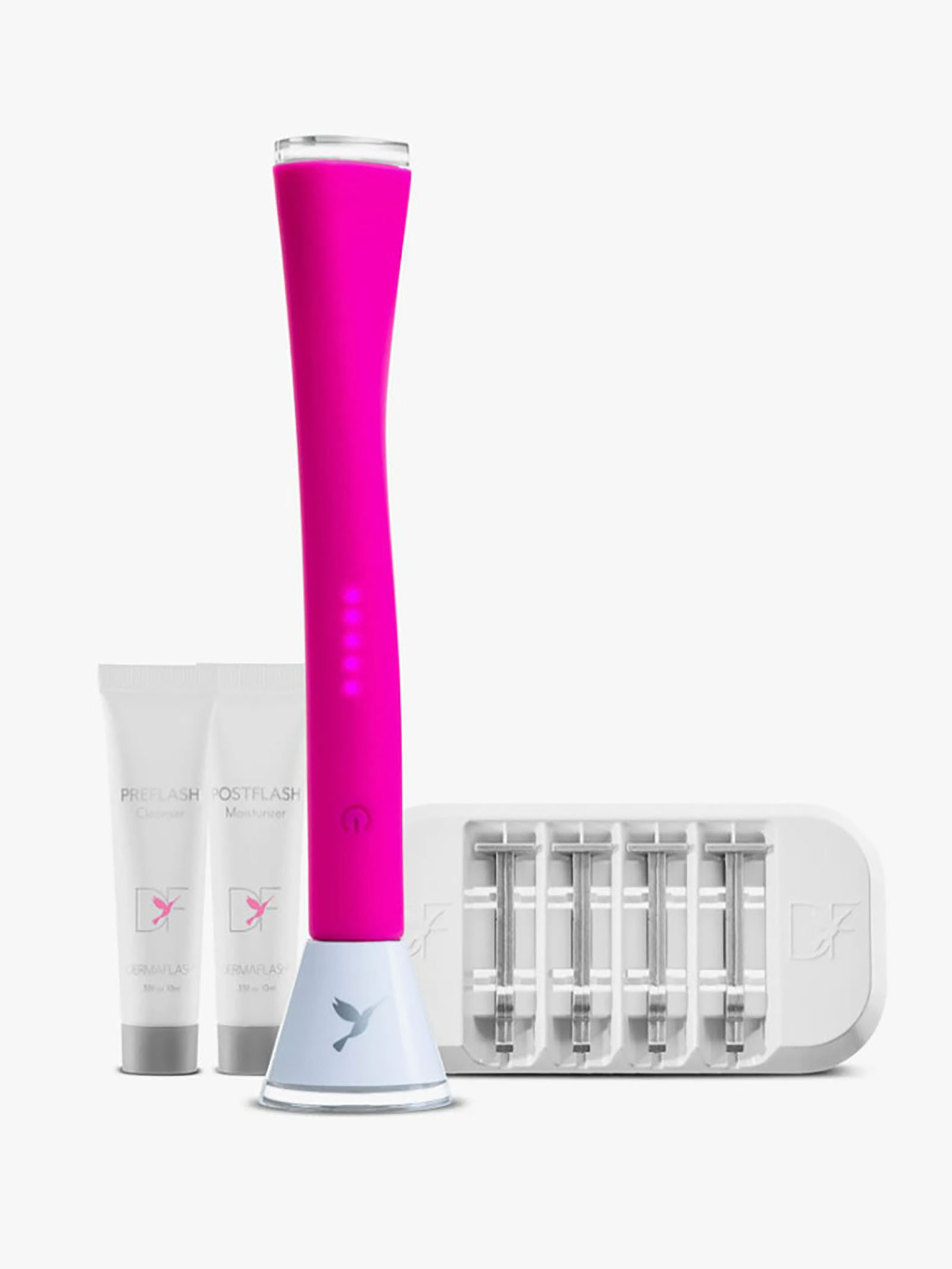 If you have a thick layer of dull skin that’s mostly due to dryness and flakes, not acne, Mattioli suggests starting with a mechanical exfoliating tool, which is often more effective than relying on high percentages of acids to break through initial buildup. Mattioli is a fan of Dermaflash Luxe, a device that uses a vibrating blade to ever-so-lightly “scrape away the top layer of skin,” she says; PMD Personal Microderm Classic, which combines spinning microdermabrasion discs that polish your face with “suction to pull out debris from pores,” offers a next step up, Mattioli adds. Los Angeles–based esthetician Shani Darden has long been wary of cleansing tools, many of which, she finds, “can be harsh on skin.” But Darden swears by the Nion Opus Luxe, which has soft, antibacterial silicone bristles that slough away dead skin cells “without causing irritation.”