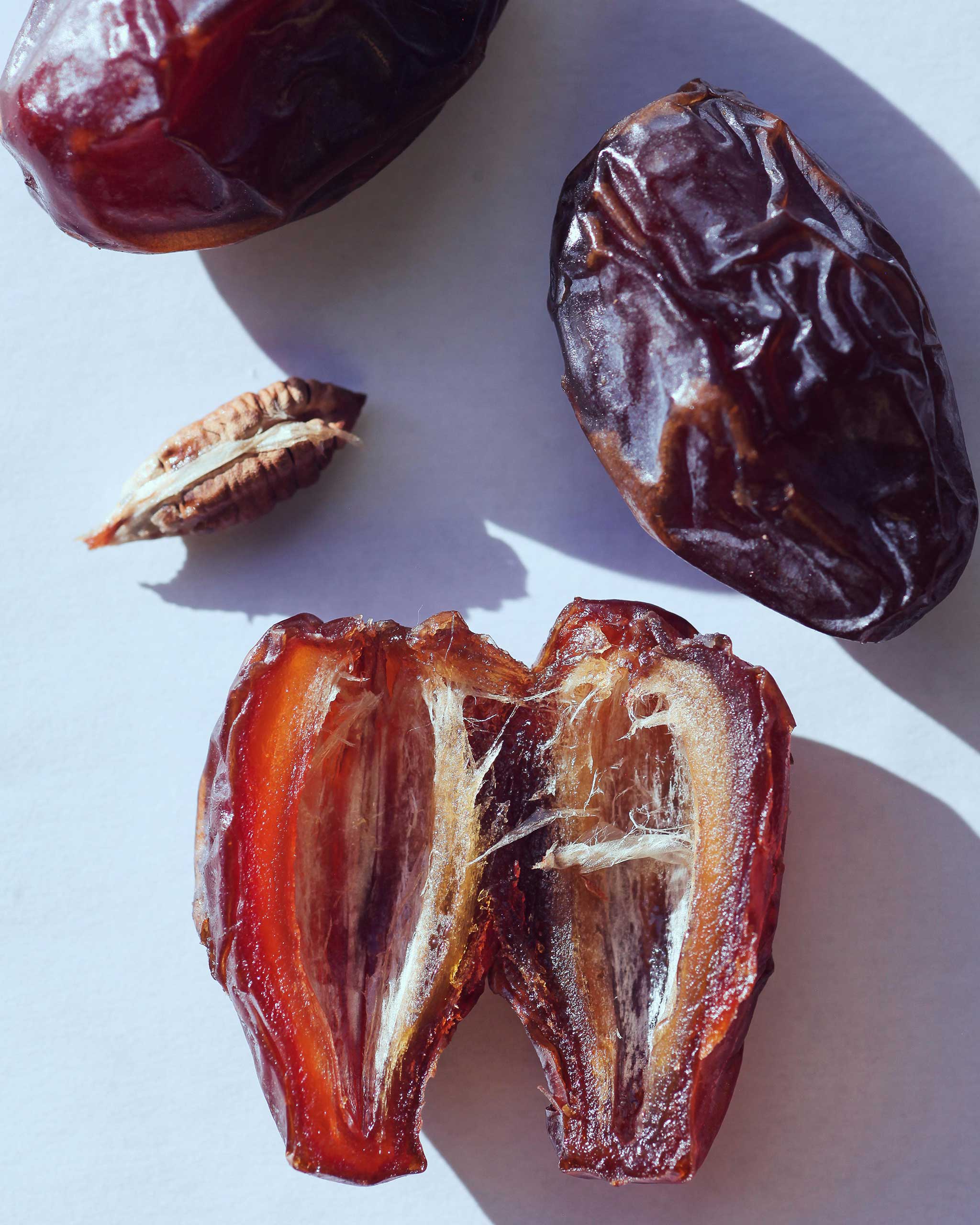There are endless ways to enjoy dates—and not just in the form of syrup as a natural sugar substitute for baking or in coffee. If you want to eat them in their whole, dried form but find them a little hard, they can be softened easily by soaking for a few minutes in water. Try them on bread with peanut butter and a pinch of sea salt (cut them lengthwise and remove the pits) or mix chopped and pitted dates with greek yogurt, curry powder, and chives for a sweet-savory dip.