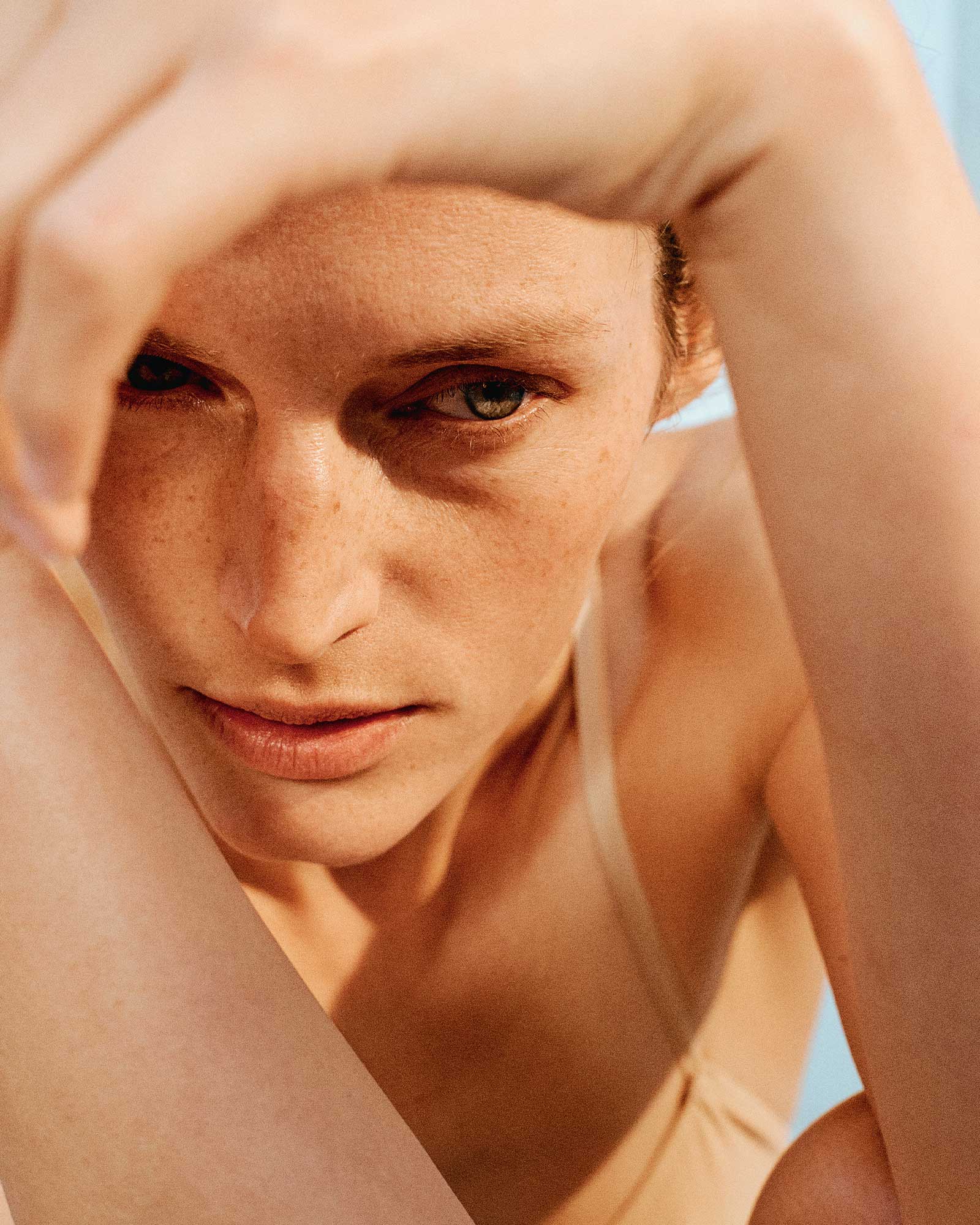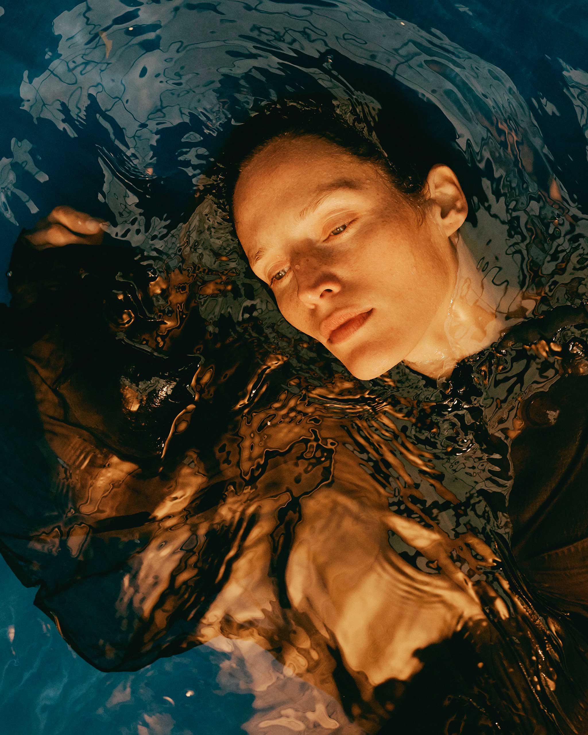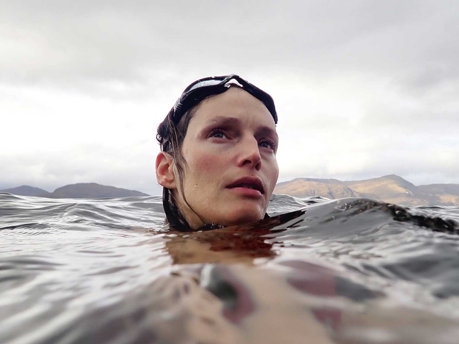 Every day, sometimes twice a day, Vivien Solari, 45, swims in beautifully clear and crisp water of around eight to 10 degrees Celsius, depending on the time of year. The image on 93 was taken on a visit to Loch Linnhe, where the model and cold water swimming enthusiast rubbed shoulders with seals, but more often you’ll find her carving through the waves of the sea on the south coast near the Solent, the strait that separates the Isle of Wight from mainland England, where she has lived for 22 years. Her skin has the kind of glow that looks like she is intravenously fed Hailey Bieber & Erewhon collagen smoothies. She is strong, resilient, confident. She feels revitalised. “To be immersed in something powerful and wild is often a humbling experience, and the water demands your respect but it is nurturing too.