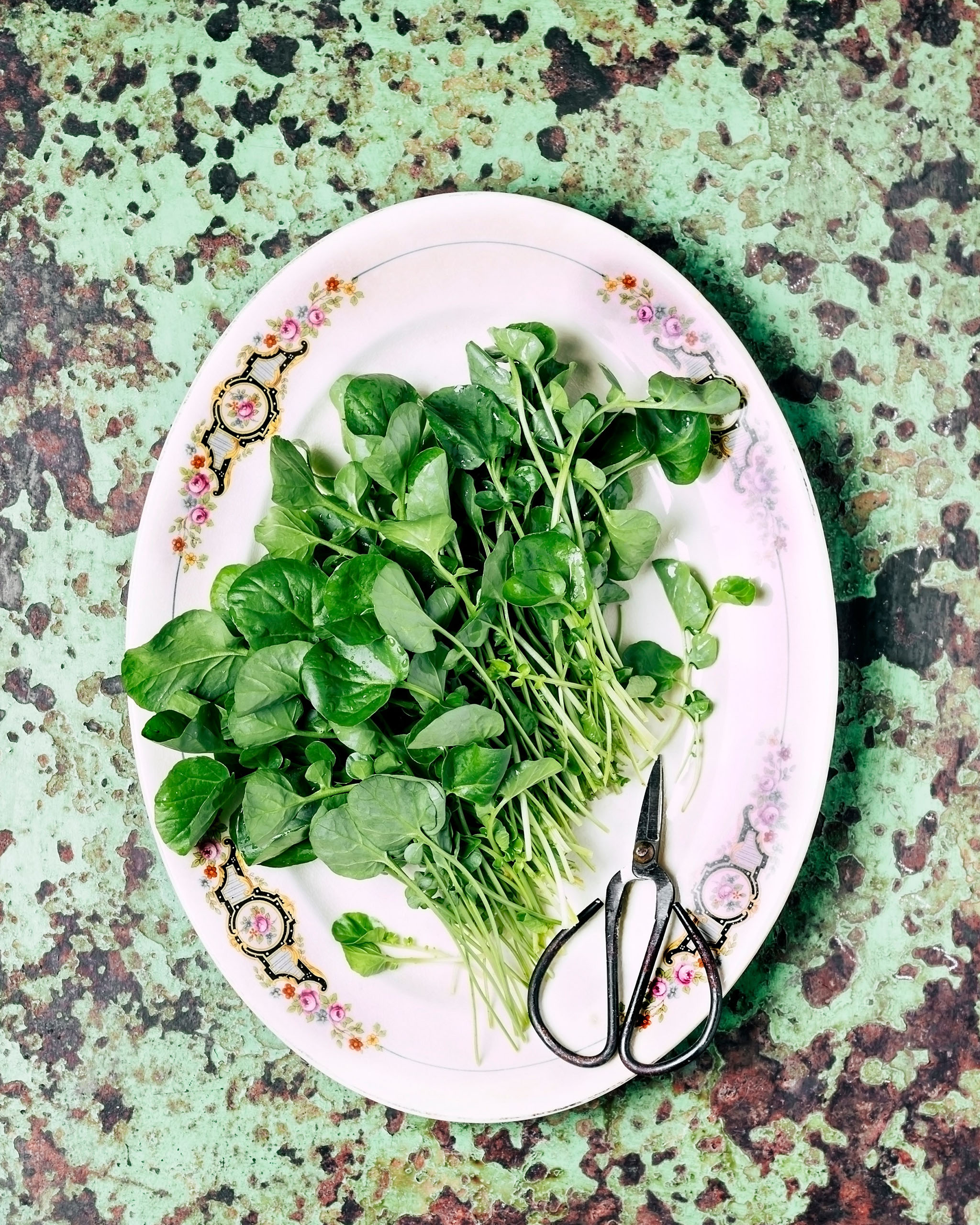 First of all, watercress is not to be confused with garden cress, which you might remember growing on a plate with a damp paper kitchen roll or some absorbent cotton as a kid. The two species are different in appearance alone: Garden cress has short stems with small leaves, while watercress develops a height of up to 15 centimeters and the leaves have a diameter of about 3 centimeters. The taste is also different: garden cress is reminiscent of radish, while watercress tastes a little like mustard due to—you guessed it—the essential mustard oils present.