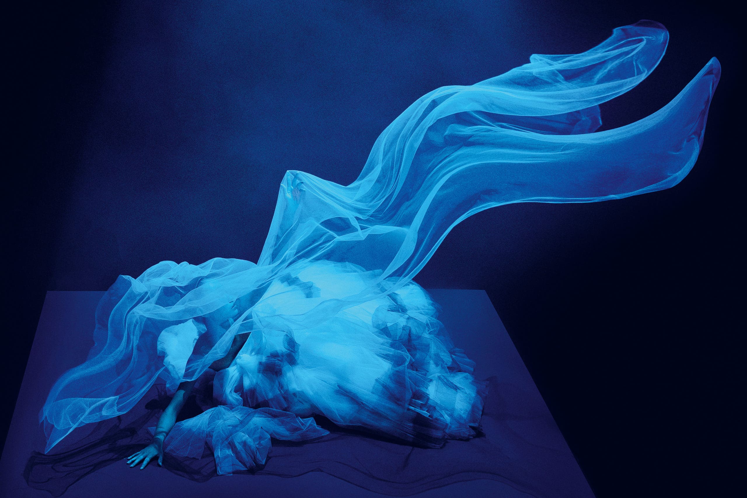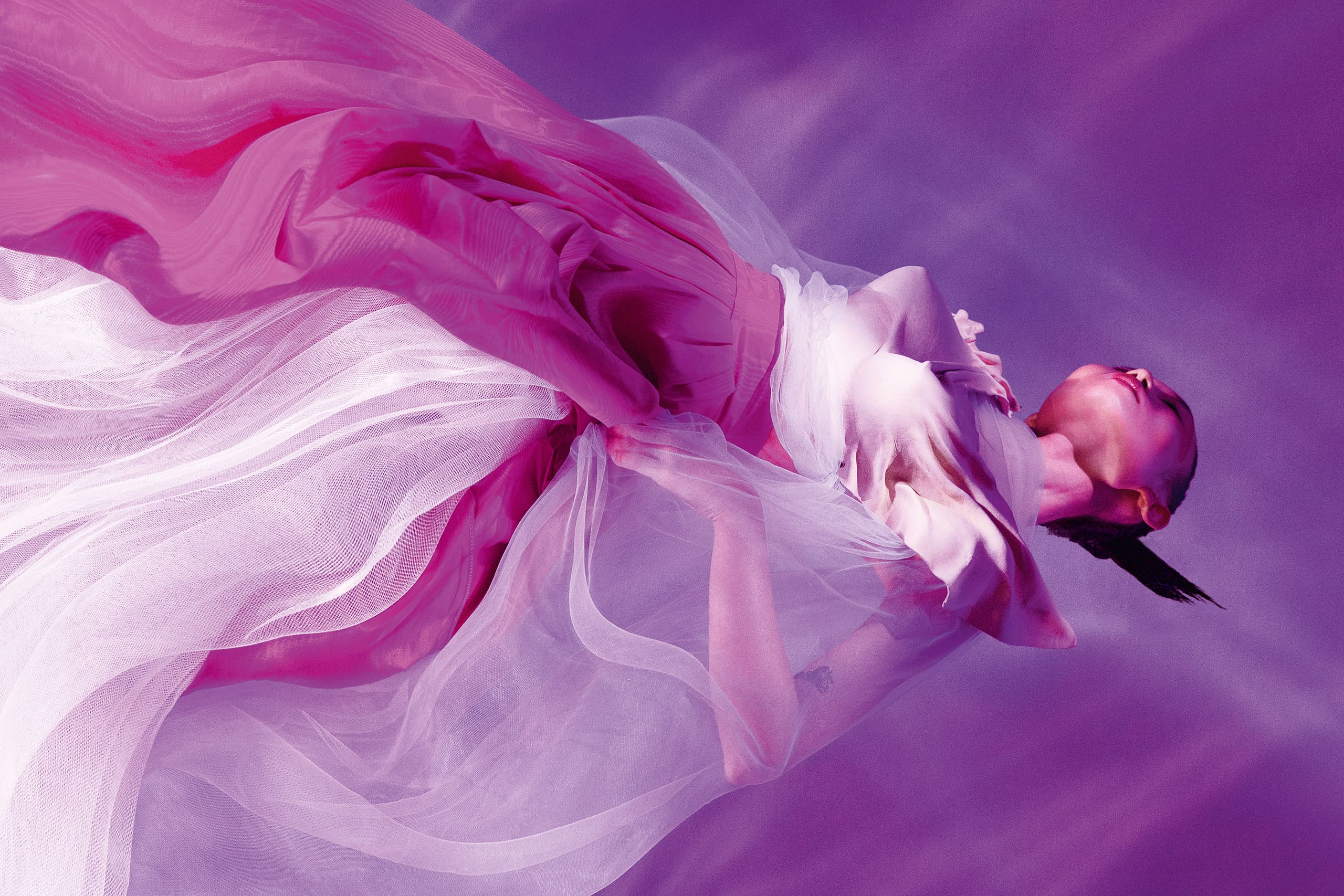 There is a journey to the elusive calm state of mind, that which travels different realms to reach a point of release. Here, we tell its story through the poetry of dance with fantastical tulle frocks, painterly dresses, and the most ethereal light-as-air pieces.