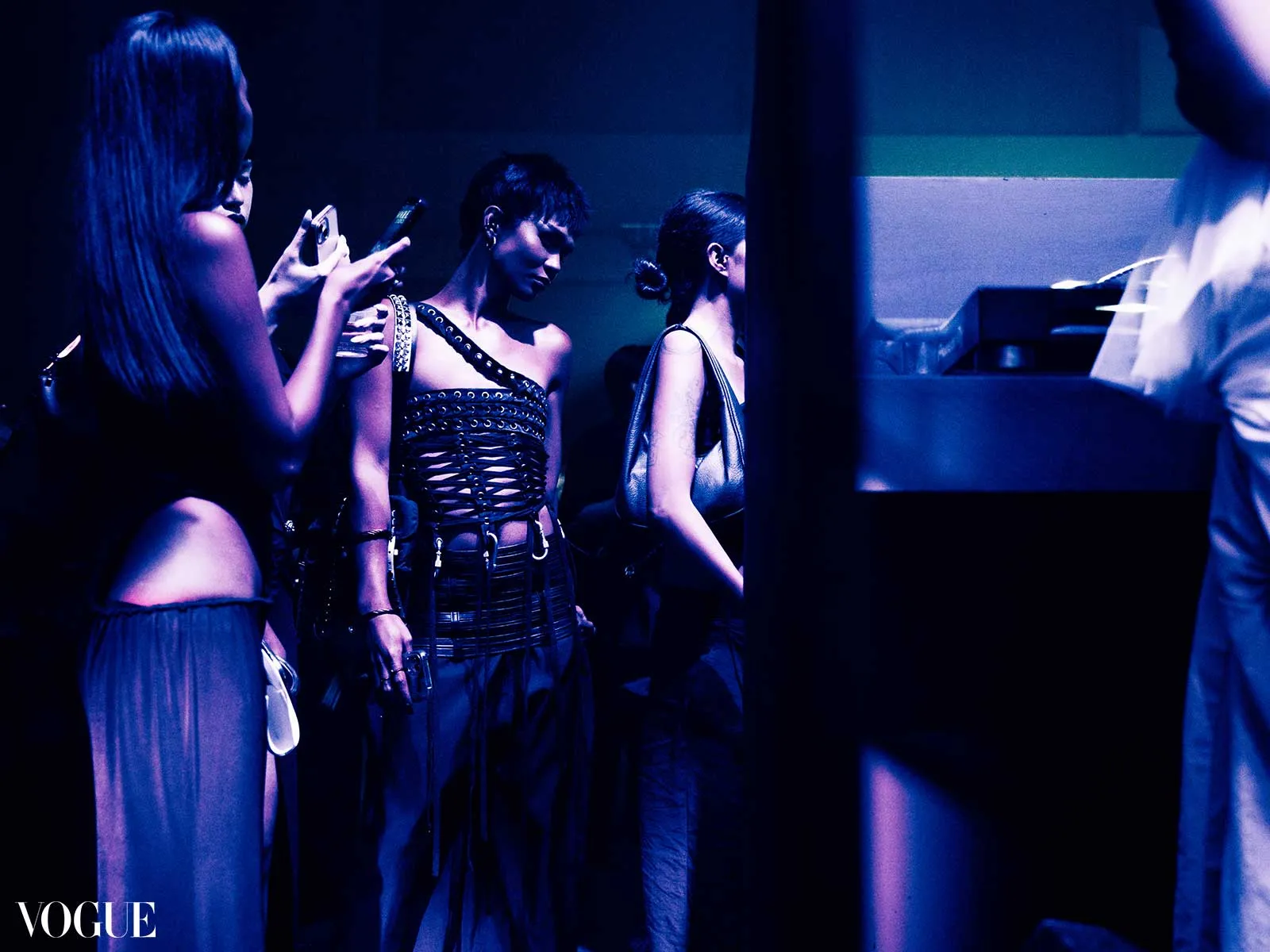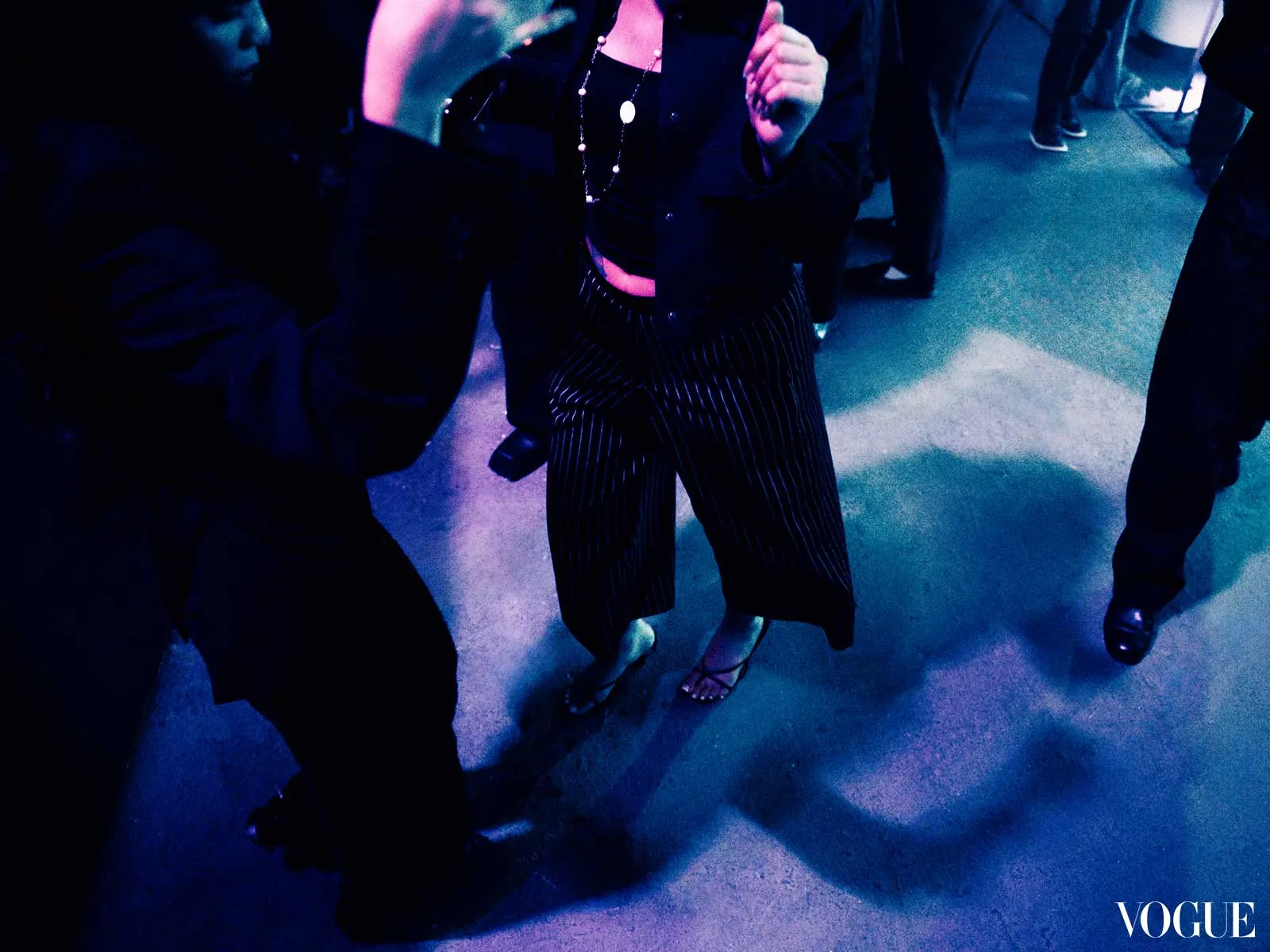 Most of the women embraced the theme in slinky bodycon dresses that evoked the catwalk energy of early-2000s Donatella Versace, or the asymmetrical elegance of early Rick Owens, accessorized with minimalist Bottega Veneta pieces or classic Chanel flap bags. Vogue Philippines editors Pam Quiñones and Audrey Carpio wore designs by Vestido, Cheetah Rivera, and Rosanna Ocampo, respectively. The men, meanwhile, leaned in the opposite direction: those not in sleek suits or shirts and ties arrived in sportswear that recalled the utilitarian flair of Rotterdam’s gabber club scene with combat trousers, and chunky army boots. Anthony Constantino turned up in head-to-toe Louis Vuitton, while Jason Dhakal wore a full Toqa look designed by Isabel Sicat.