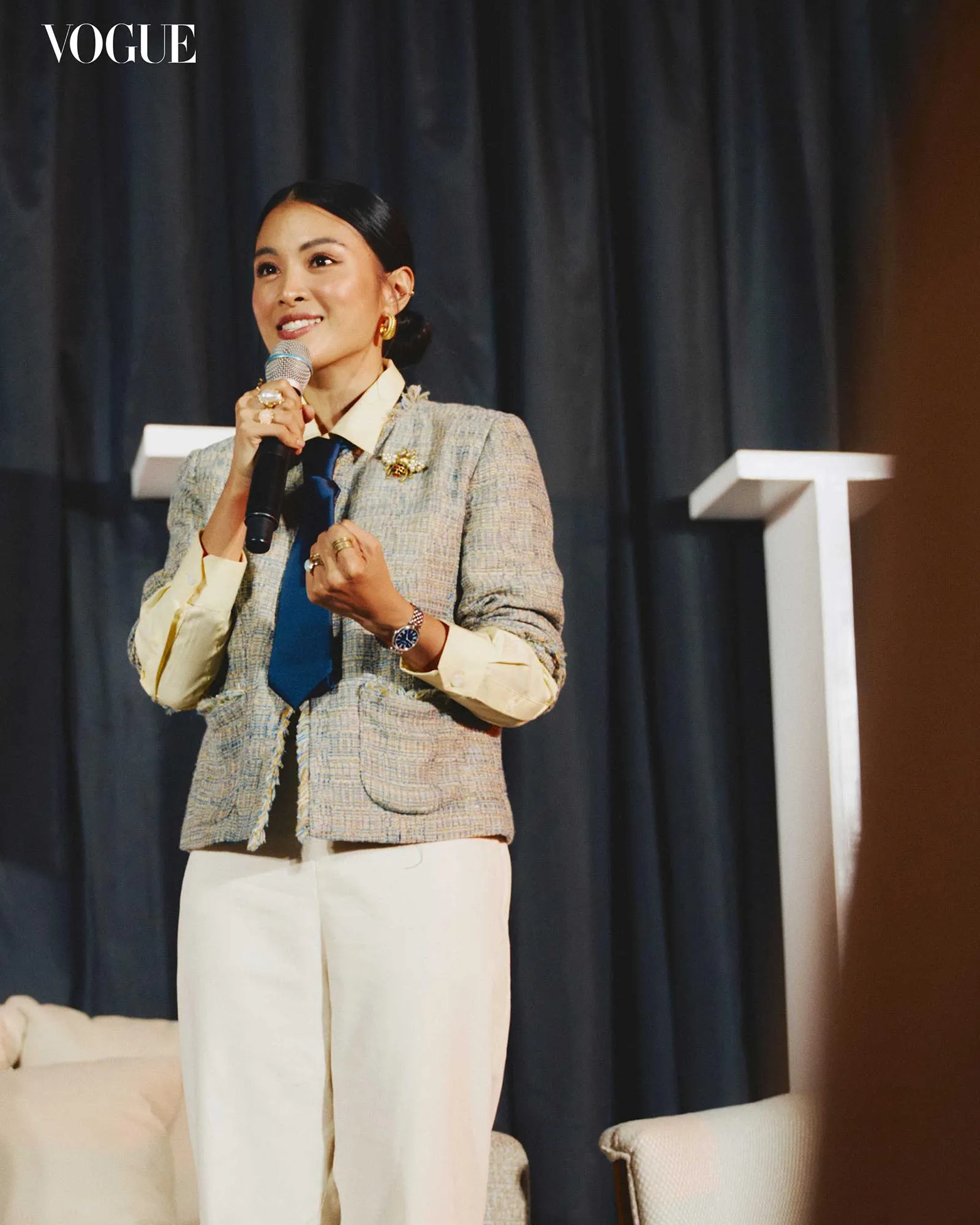 At Vogue Threads Manila 2025, actress and host Aya Fernandez moderates a talk with Aktor PH founding members Iza Calzado, Dingdong Dantes, Jasmine Curtis-Smith, and Elijah Canlas.