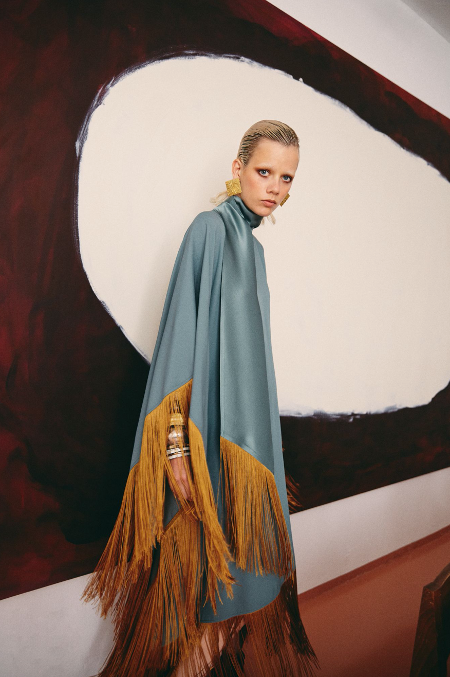 One of the better-known names in the line-up, Taller Marmo has become known for its fresh take on the kaftan, trimming the traditionally modest garment with feathers and fringing. Already a favourite amongst the fashion crowd, we expect this brand to make many more appearances on A-listers this season.