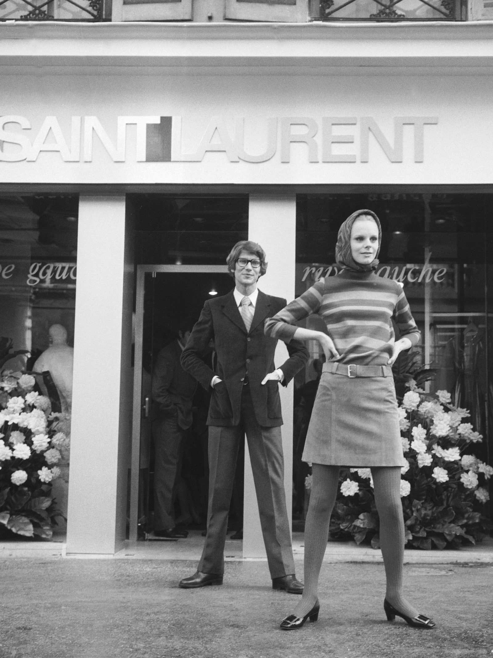 In a few short years, Saint Laurent would give the world icons of fashion—a word often employed but rarely accurate. First came his primary-colored shift dresses inspired by the geometric work of Piet Mondrian in 1965; Saint Laurent, not one of Swinging London’s designers, seemed to beat them at their own game in doing so. In 1966 came the gender-bending Le Smoking tuxedos for women. And in 1967, he delivered his safari-inspired collection, brilliantly documented with a memorable Richard Avedon snap of Veruschka. And Saint Laurent was only getting started.