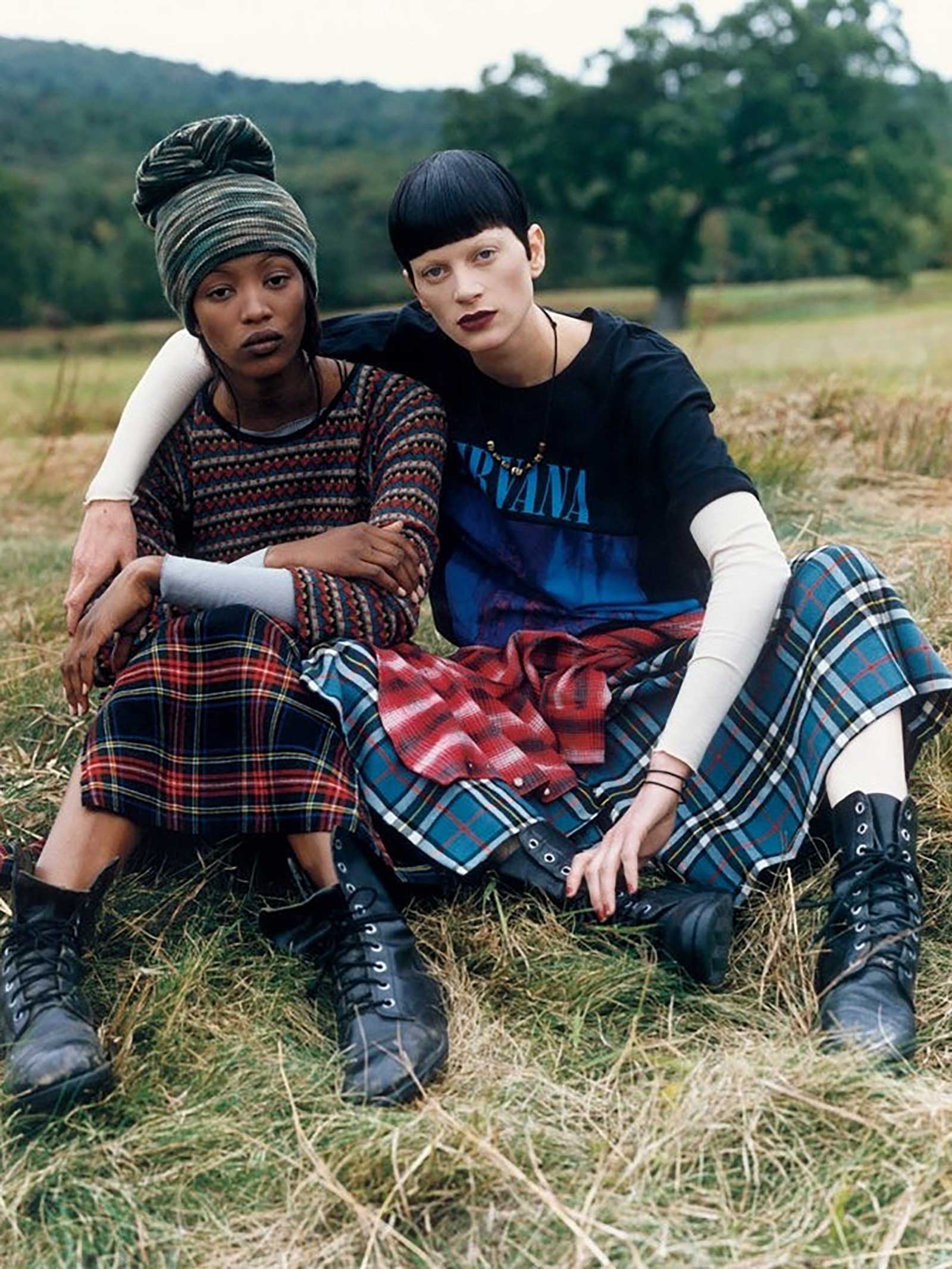 In the spread, edited by Grace Coddington, models wore Ralph Lauren, Anna Sui, and plaid shirting with the sleeves hacked off over translucent Calvin Klein slip dresses. There are lots of beanies, layering, and band tees.
