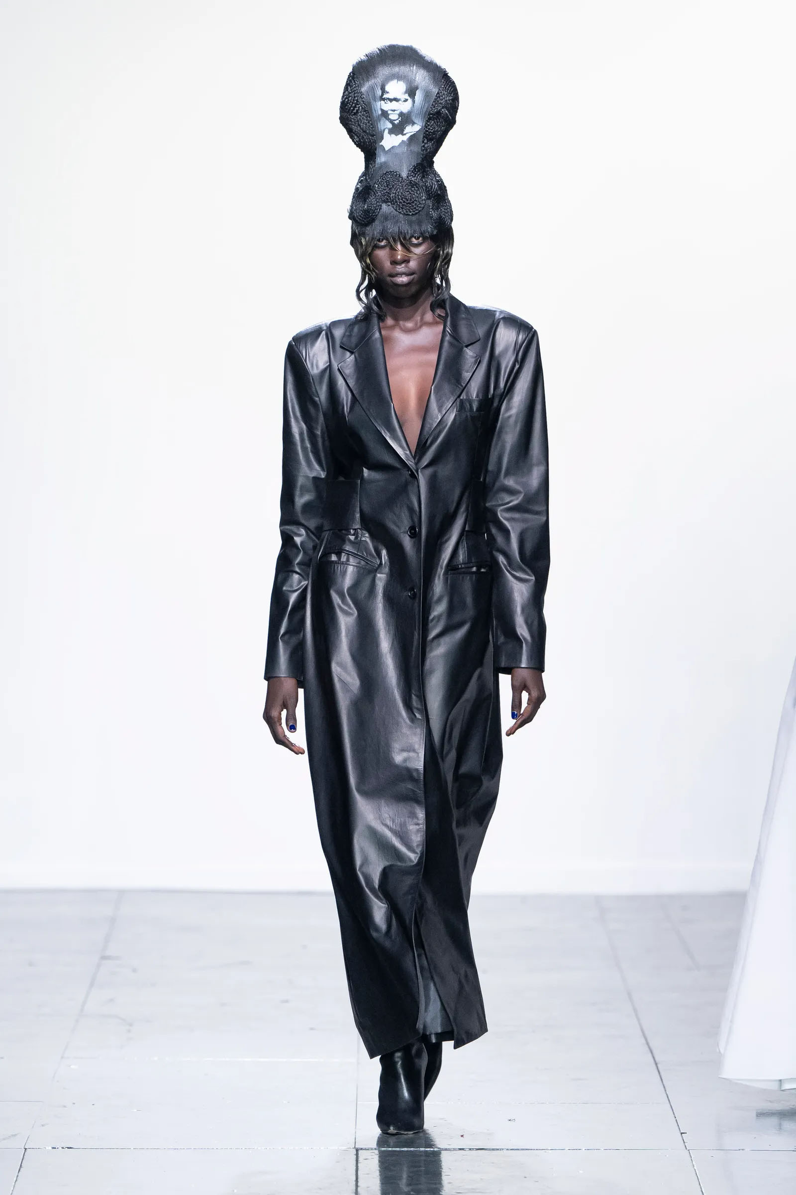 I’m still quite overwhelmed. I haven’t actually processed everything that’s happened; it’s unreal. I can’t find the words to describe how much it means to me. After graduating, [Vogue’s global contributing fashion editor-at-large] Gabriella Karefa-Johnson [who styled the show] reached out to me and said I really like your work and if you ever need anything, just let me know. So earlier this year, I reached out to Gabriella and proposed that we work on a show together, and we just went on from there. [It’s made me] realise that anything’s possible: you don’t have to look a certain way to create certain things.