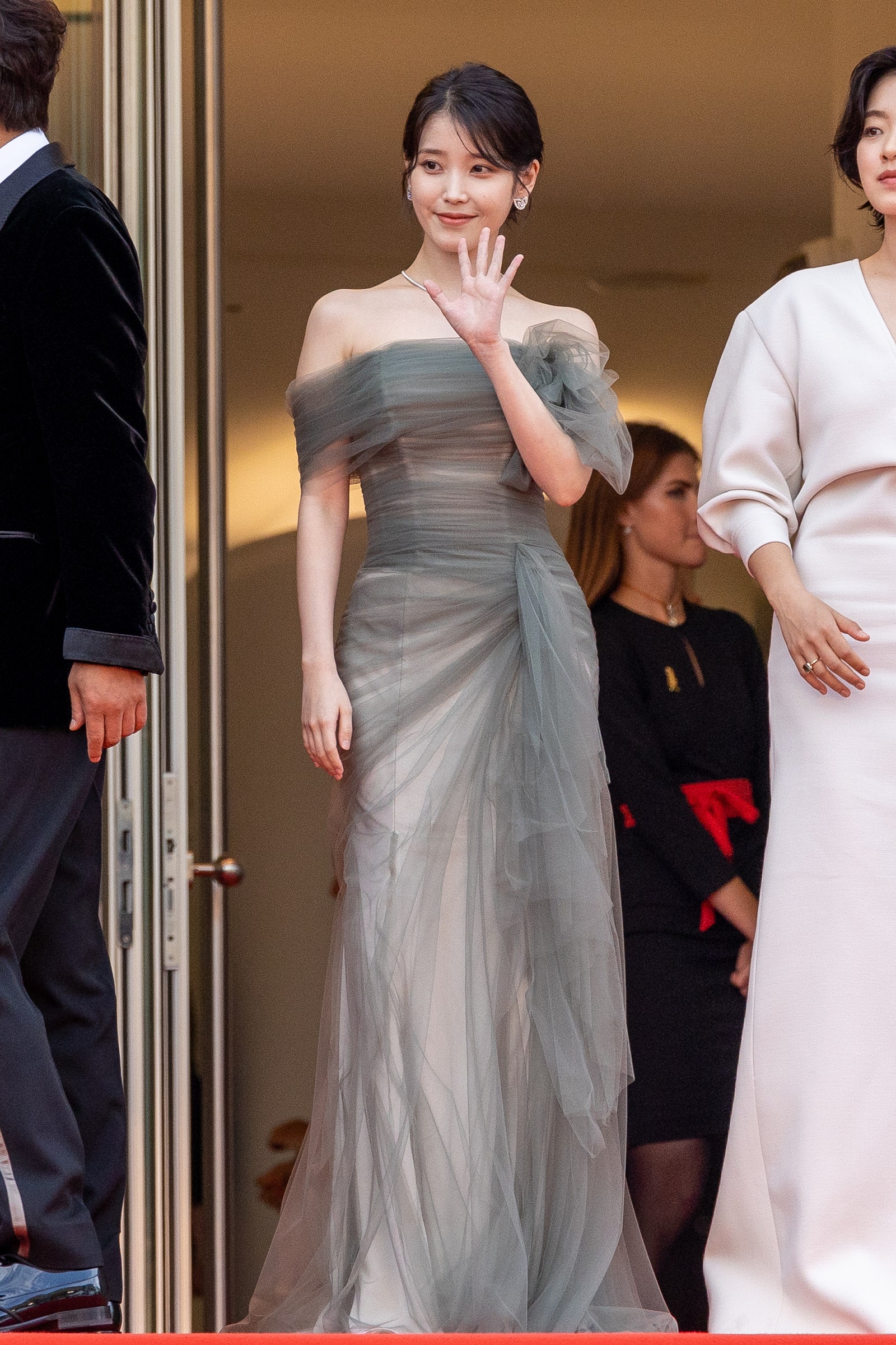Solo artist and actor Lee Ji-eun, who goes by the stage name IU, has a sweet sense of style, exemplified by the off-the-shoulder gray gown she wore at the Cannes Film Festival in 2022.