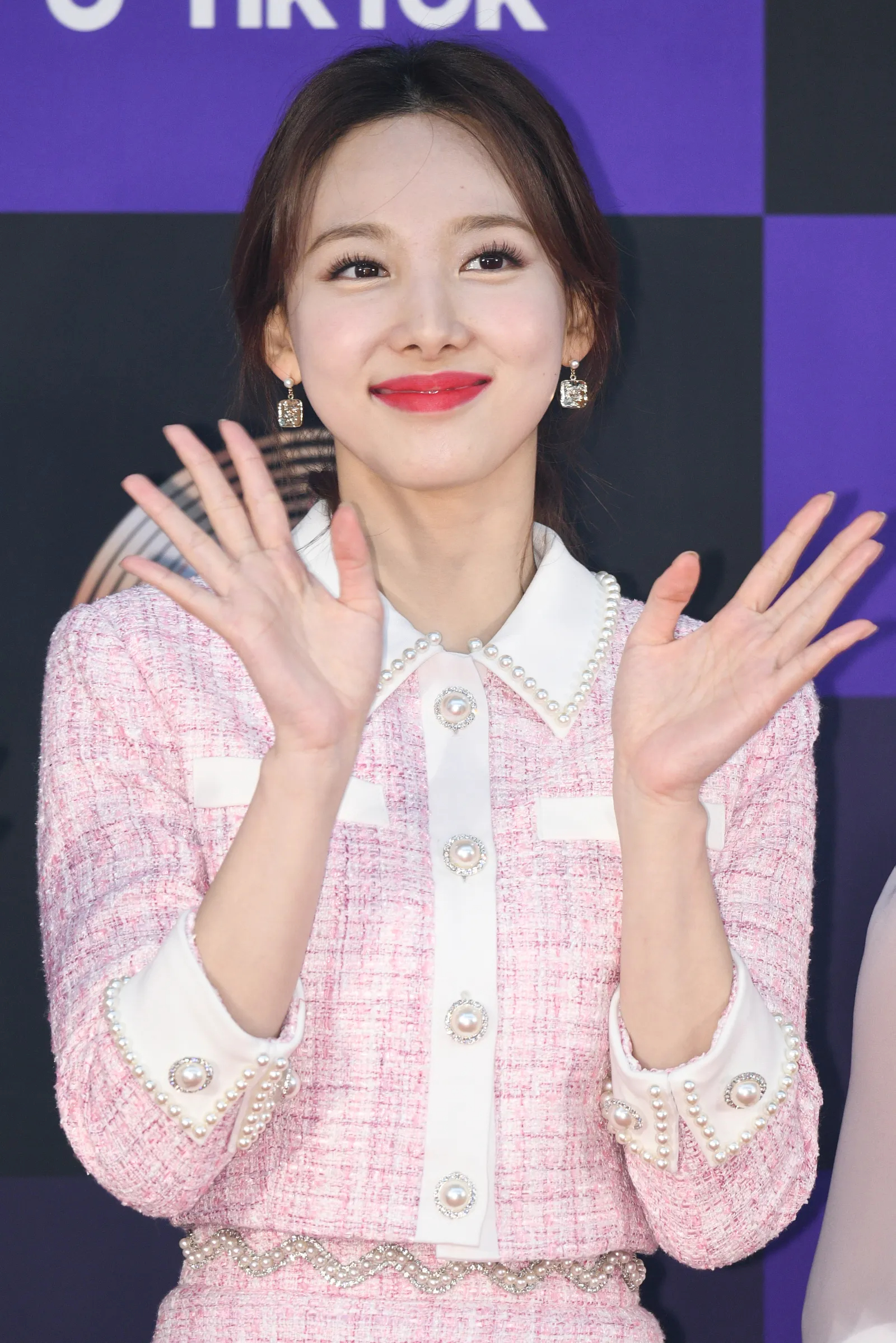 In 2019, Twice posed for the South Korean show M Countdown in a range of galaxy-themed metallics. Alternating between wide-leg pants and miniskirts, the group channeled an out-of-this-world look filled with glimmer and shine.