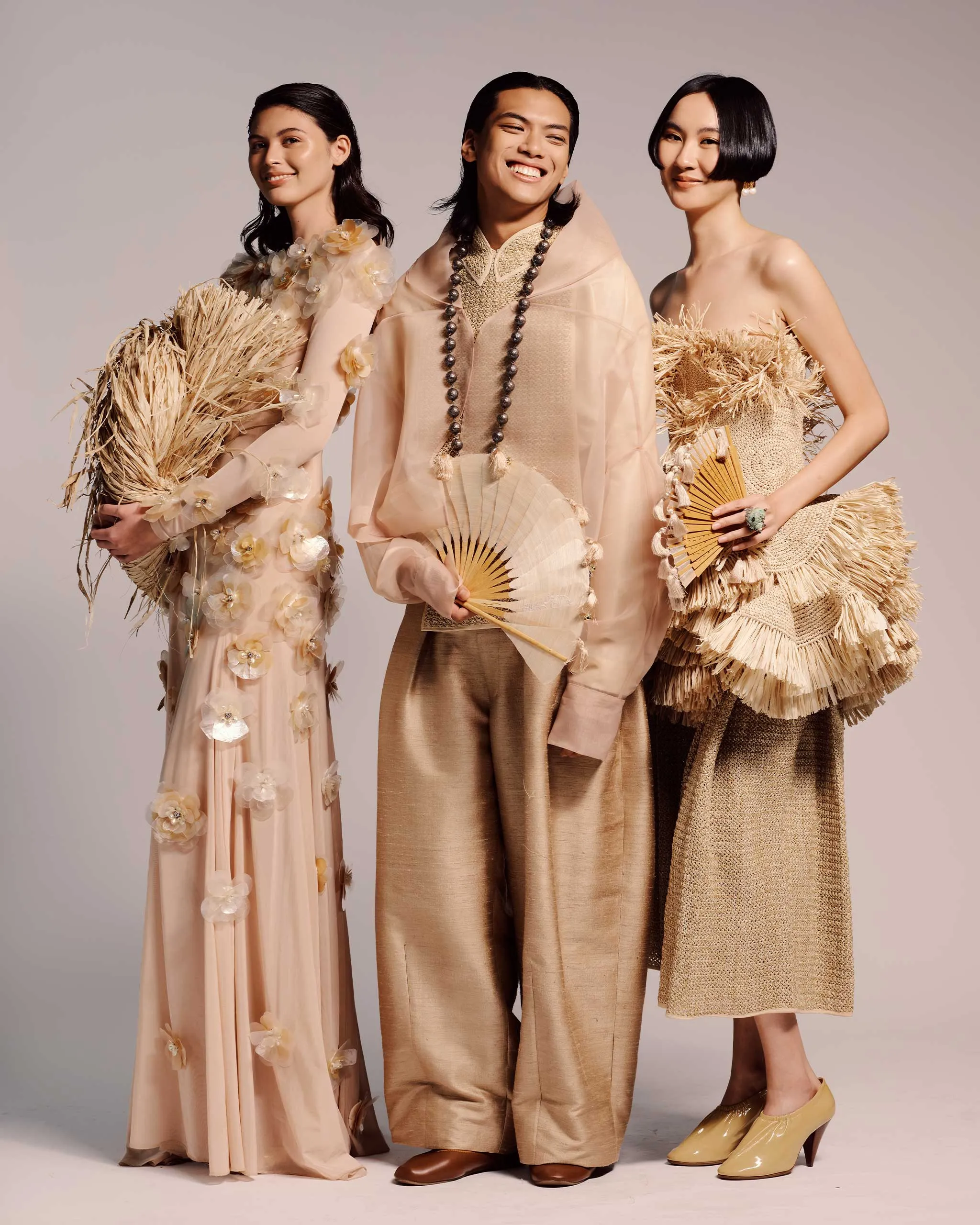 “Fashion has been my medium to understand heritage, identity, and culture—not only through materials, but through how our people interact, the values that guide us, and how these stories can remain relevant for today and for future generations,” he says. The process, he explains, required a collective imagination. “Lahi is a storyboard of Philippine fashion developed through collaboration. Bayanihan is a core Filipino value. There is strength in creating a point of view together with other Filipino creatives.”