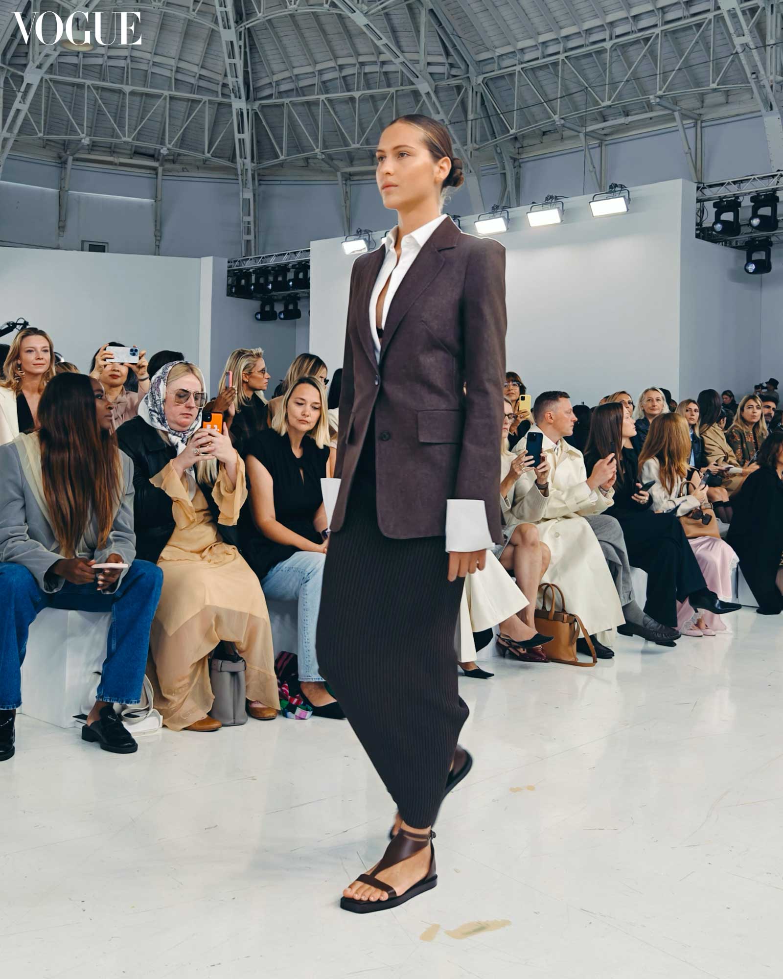 From sophisticated rich browns and skin tones to navy with indigo and slate gray, Max Mara’s spring 2025 collection showcases their mastery of neutral dressing with impeccable tailoring and knitwear. The collection also showcases impeccably-cut coats cinched at the waist with belt bags-cum-clutches, draped linen dresses with smart cutouts, and slim jackets with peek-a-boo backs.
