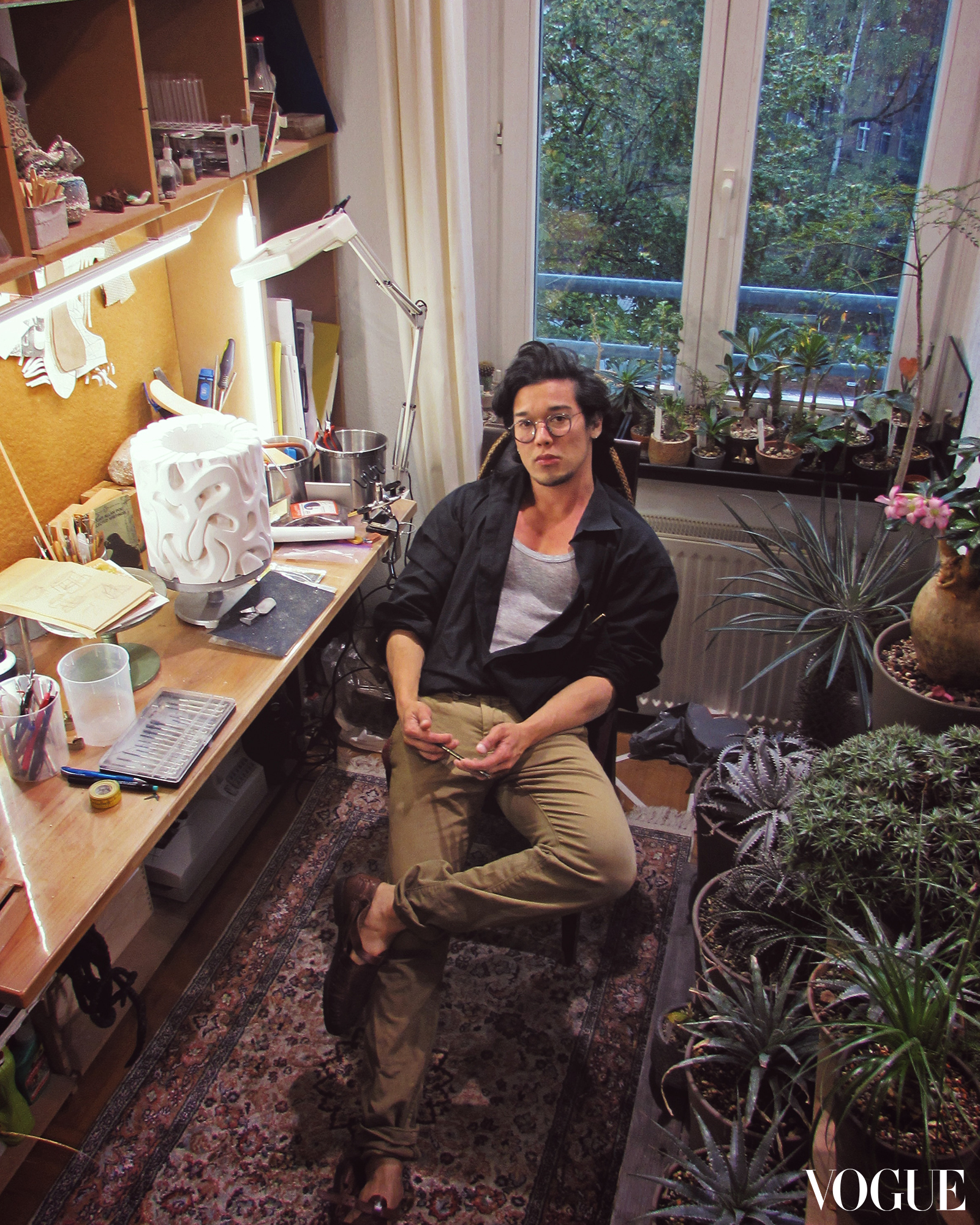 Calling Berlin home was not a long-held desire for the designer. He was visiting with friends in Berlin in 2017 while launching an exhibition of his work in the city at the time. It was a city, he says, that embraced creativity, community, and queerness. In short, it felt like Berlin had opened its arms and invited Tesoro to make himself at home, which he did in 2018.