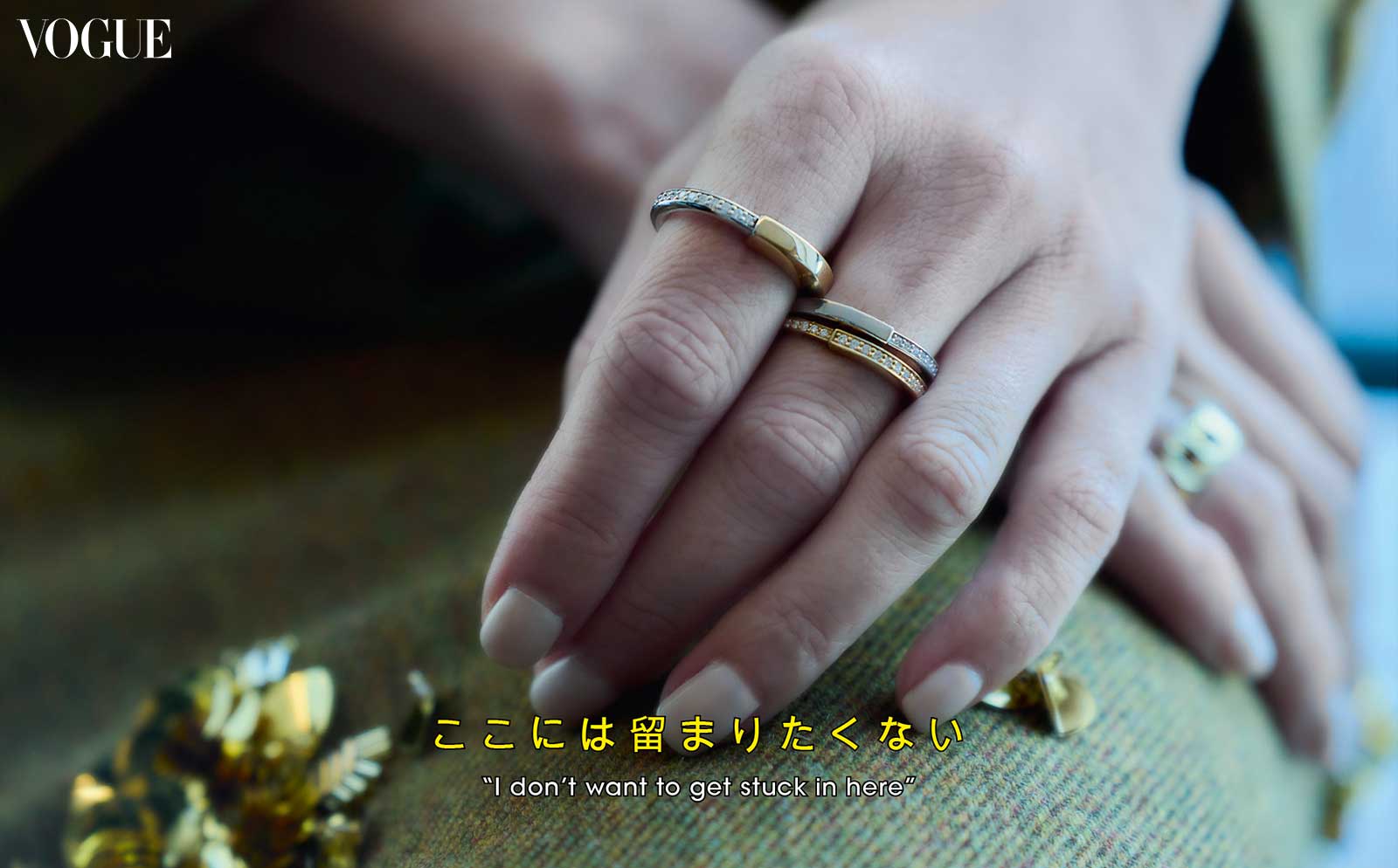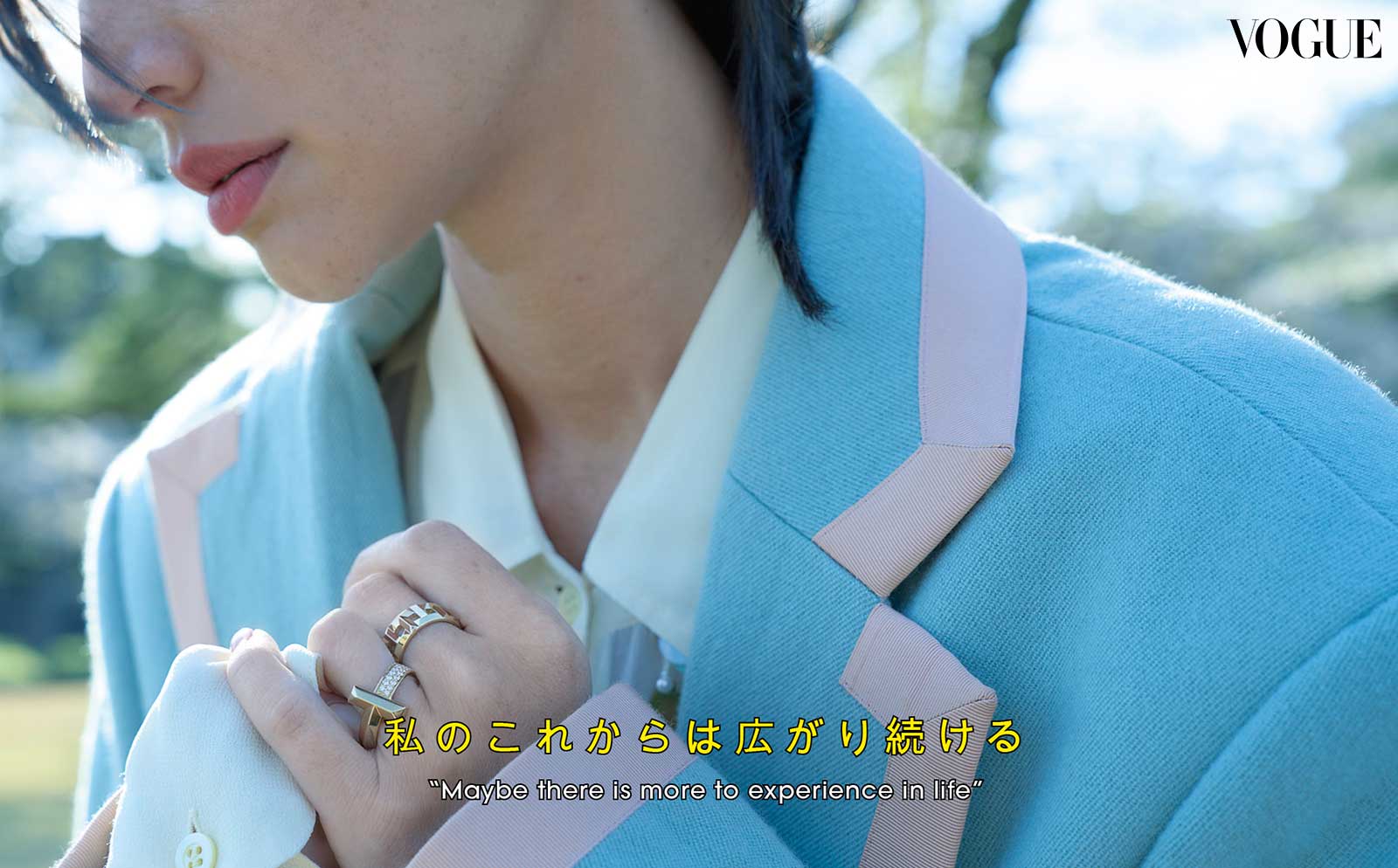 SHUSHU/TONG jacket and skirt, TIFFANY & CO. Lock rings. Photographed by Regine David for the August 2024 Issue of Vogue Philippines