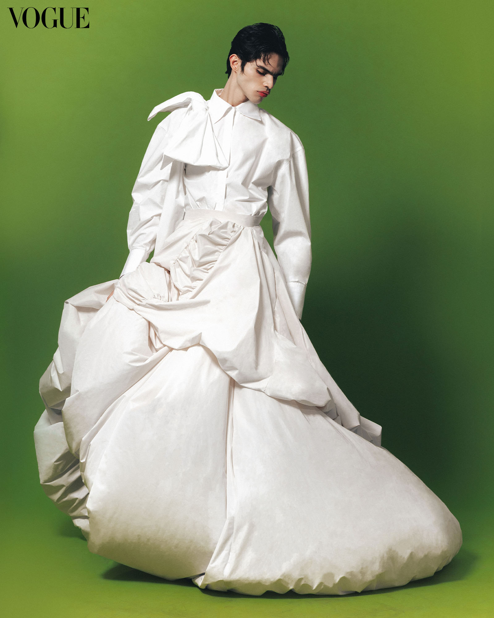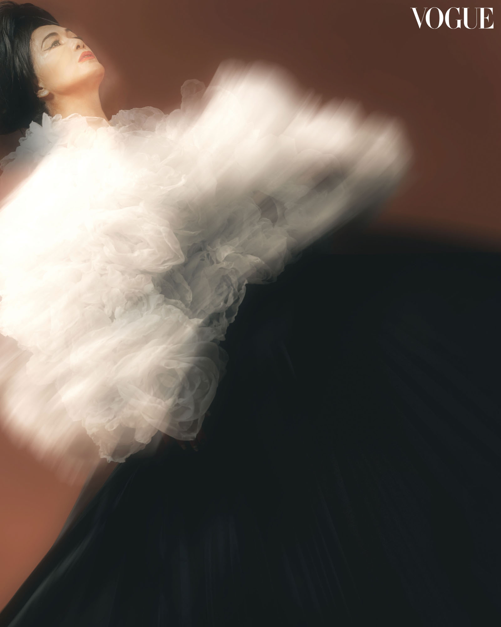 Of the models he’s worked with, Henri found a muse in Tina Maristela Ocampo. “There is something performative about the way Tina would walk the runway or pose in front of a camera. It’s not just walking or posing for her,” he says. Having been pulled out of retirement (from modeling) for the Vogue Philippines editorial, Tina once again lent her distinct brand of artistry to the set, where she embodied the emotions, nuances, and expressions that would give a voice to the silence and stillness of photographs.