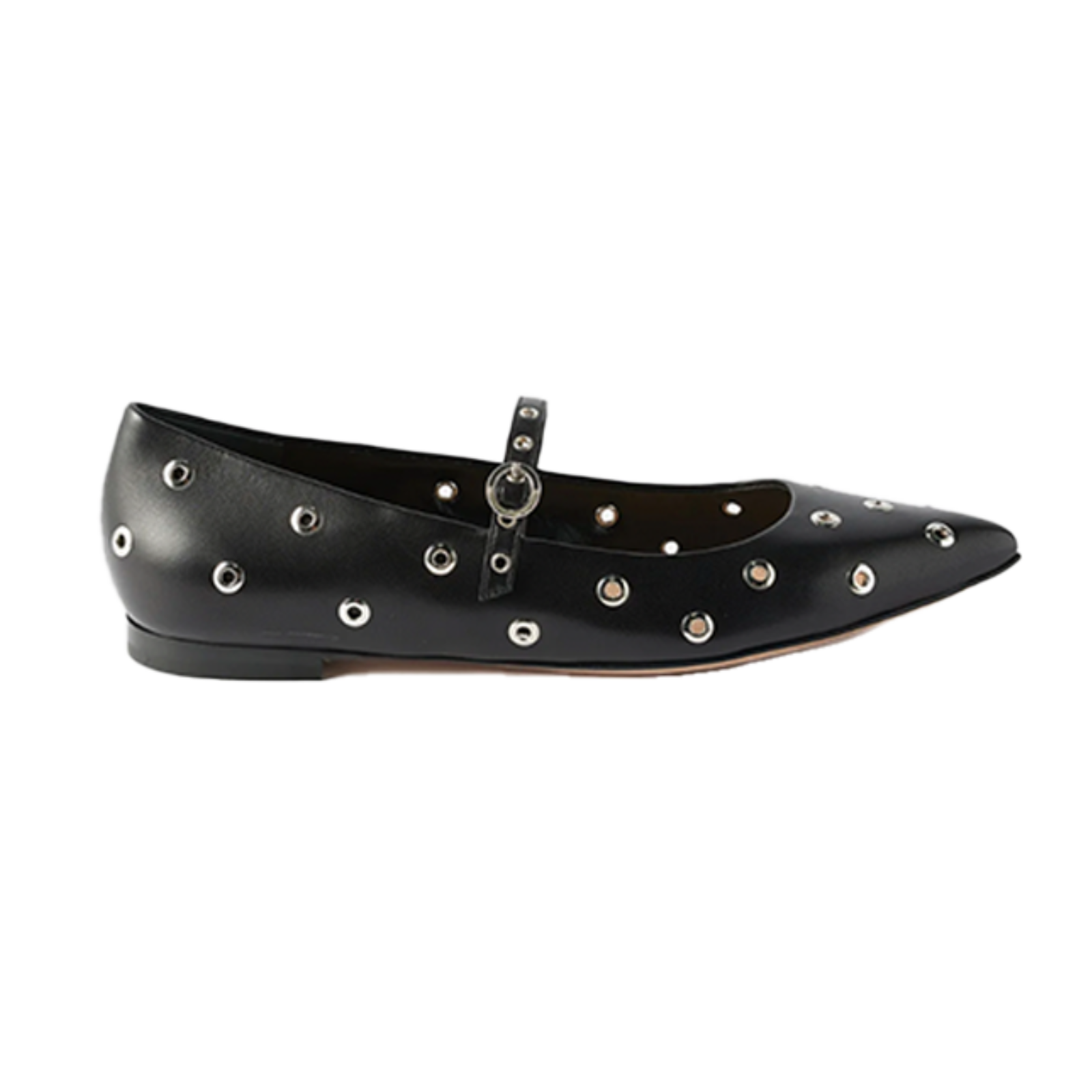 Pointed versions (see Prada, Zara and Piferi) instantly elevate all kinds of ensembles, but play with their slim proportions in a wide-legged trouser, and you’ll have a very sophisticated stride indeed. Reinvented in the magpie jewels and metallics du jour, pumps from Miu Miu make excellent accents for a minimalist wardrobe. And if all else fails, take a trip down memory lane with socks and a skirt for an outfit with preppy appeal.
