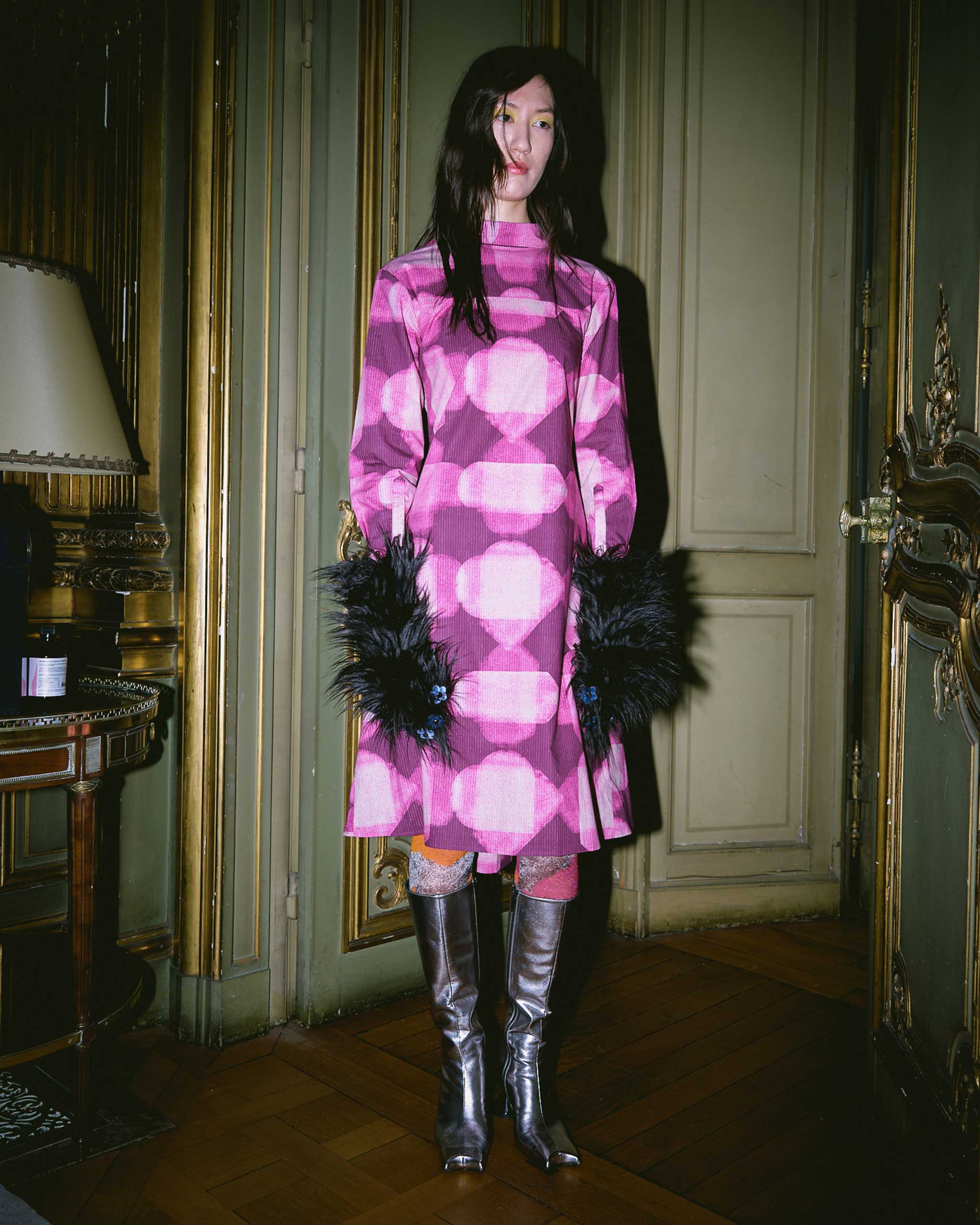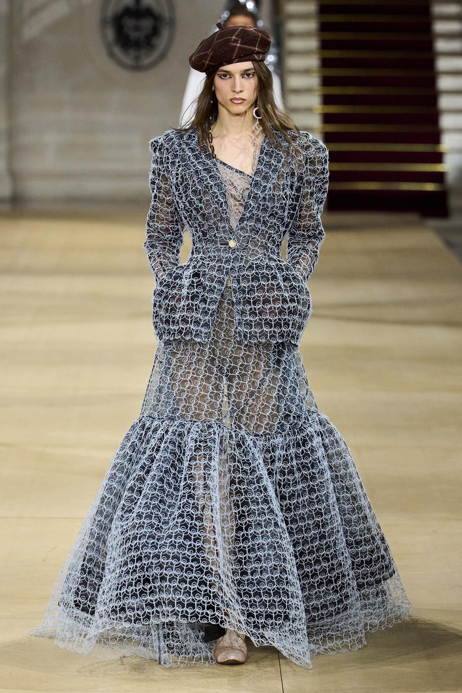 At the renowned Palais Garnier, Julian Kausner presented his inaugural collection as Dries Van Noten’s new creative director. This collection turned apparel into a theatrical affair, resembling items taken from a costume box, where each piece acted as both clothing and performance. Kausner combined precise tailoring with a bohemian flair, achieving a breathtaking contrast of unique textiles and quirky, period-inspired silhouettes.