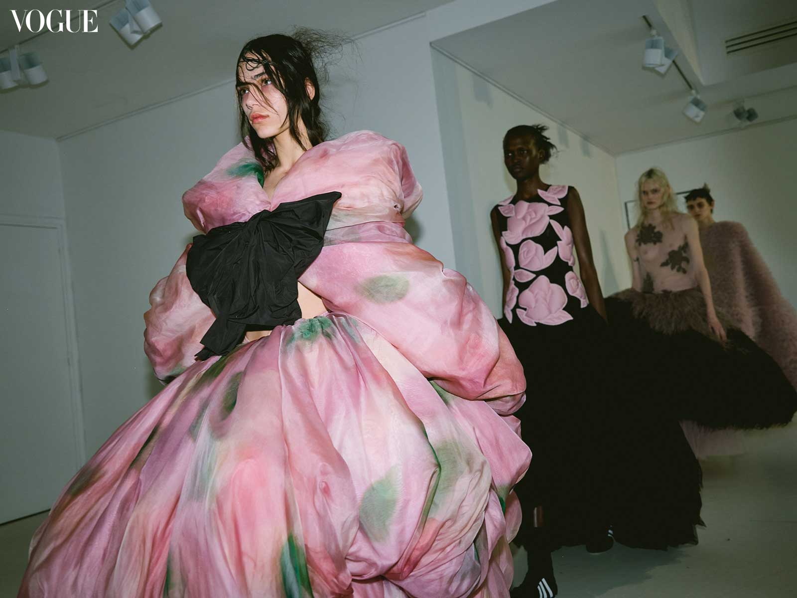 In her collection ‘Daydream,’ Hu elevated her signature smocking technique to new heights, weaving a captivating narrative of sleeping beauty across 17 looks, each adorned in delicate tulle and quilted floral appliqué. The presentation was both romantic and nightmarish, reflecting the duality of the world and exploring the tension between splendor and what we face daily on the news.