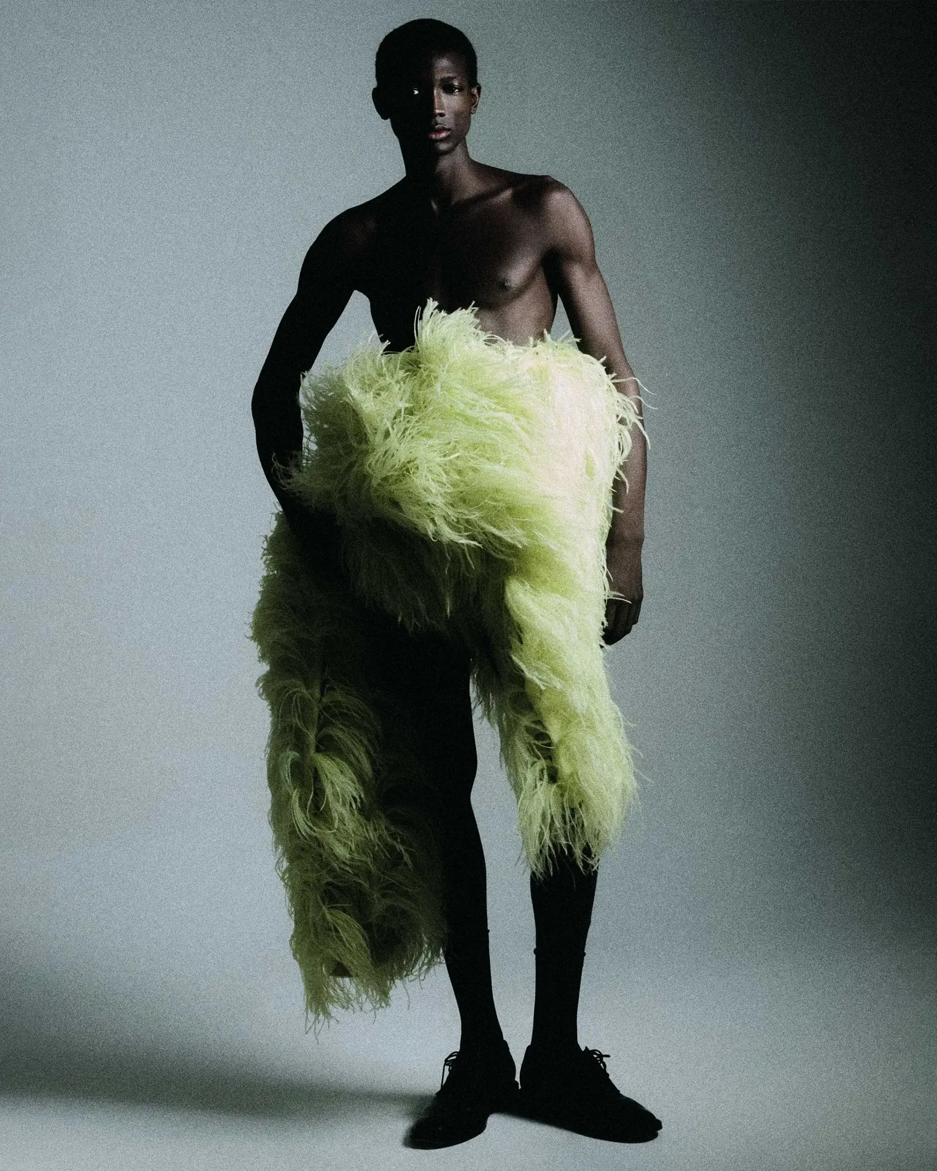Gianni wears a Balenciaga earring and Maison Margiela shoes. Photographed by Thais Vàndanezi