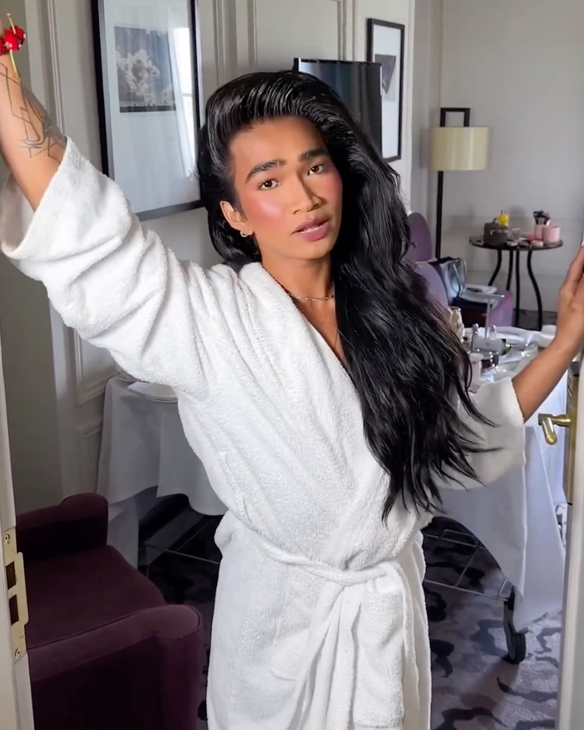 The star took his makeup inspiration from the brand’s Instagram.