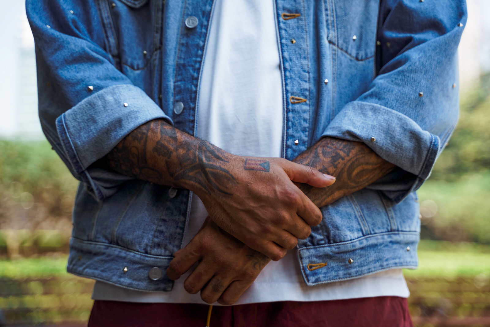 Something else that the NBA superstar has is a unique sense of style one might describe as sophisticated street. Despite the tropical heat, Carmelo Anthony chose to wear a Valentino denim-studded jacket during this walk around Manila.